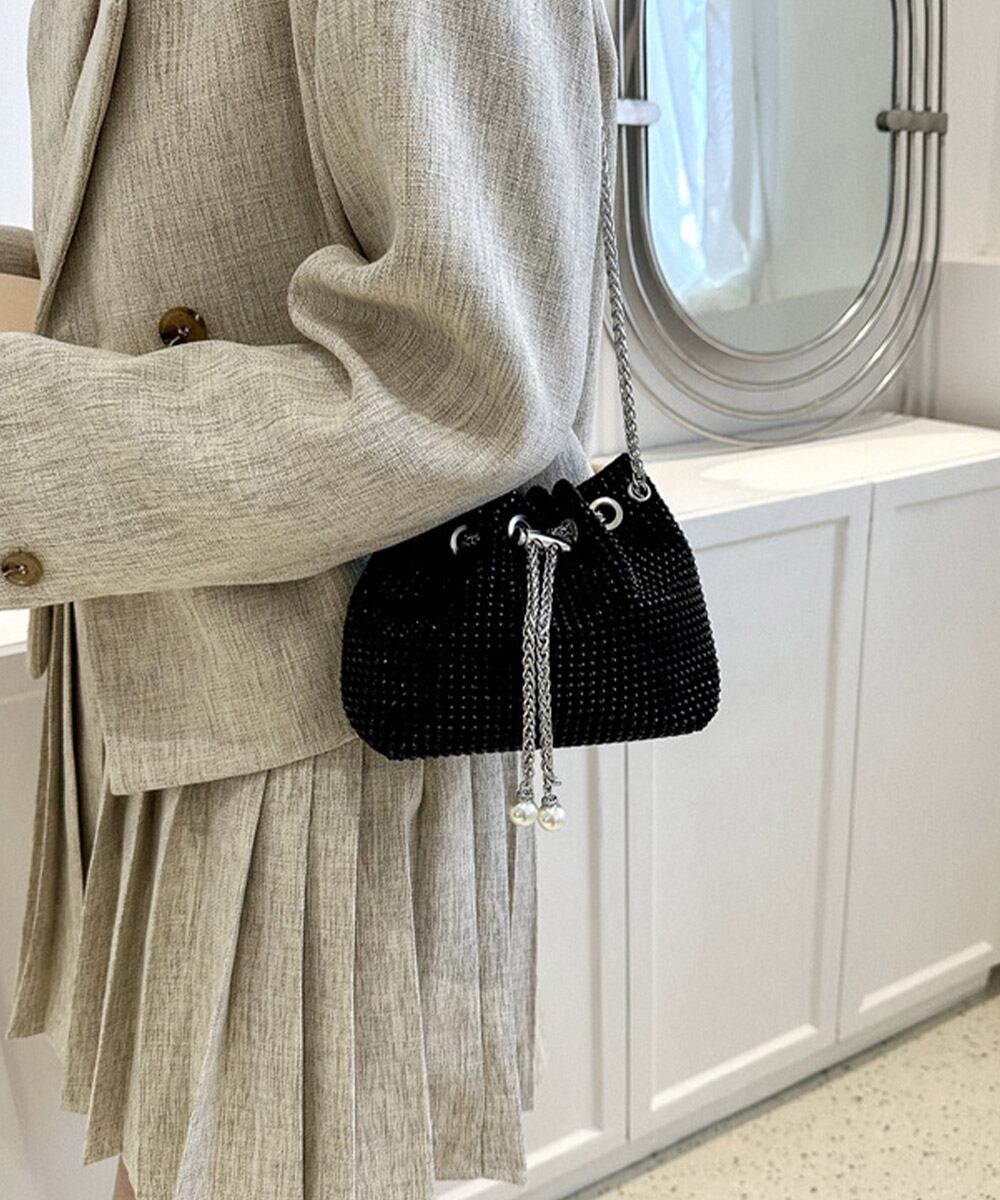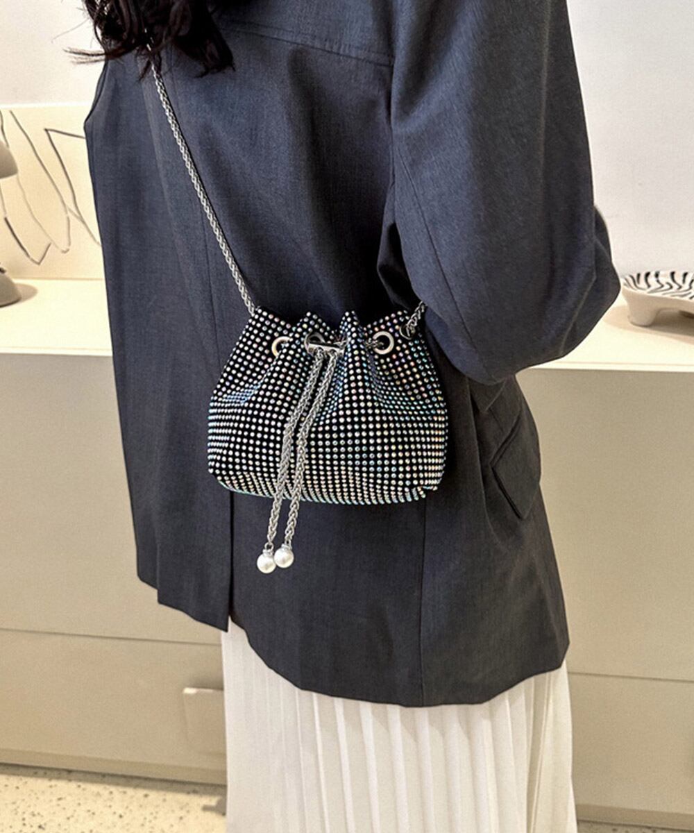 バケツバッグ レディース ラインストーン 斜め掛けバッグ コンパクト 肩掛けかばん 可愛い お呼ばれバッグ 結婚式二次会