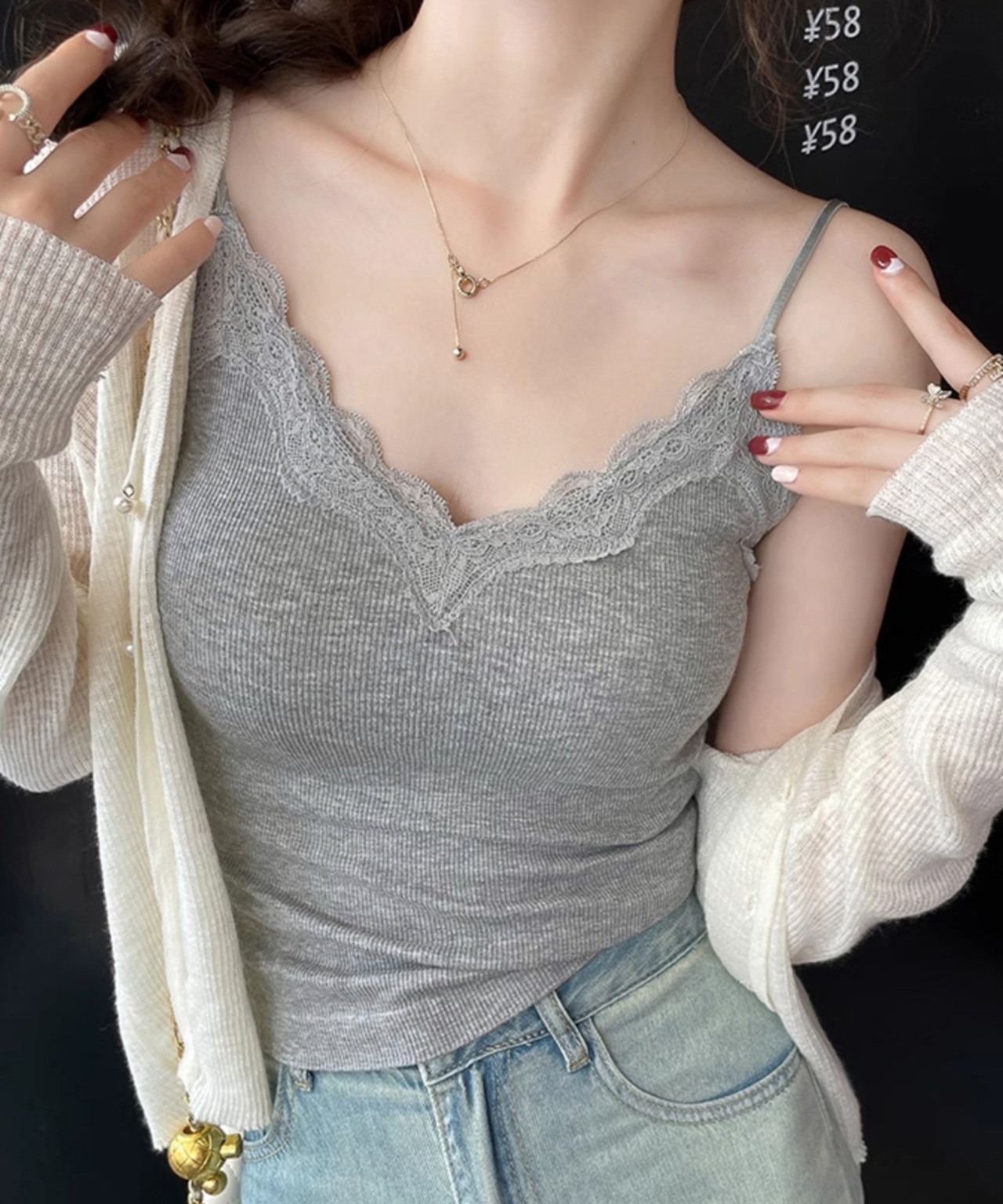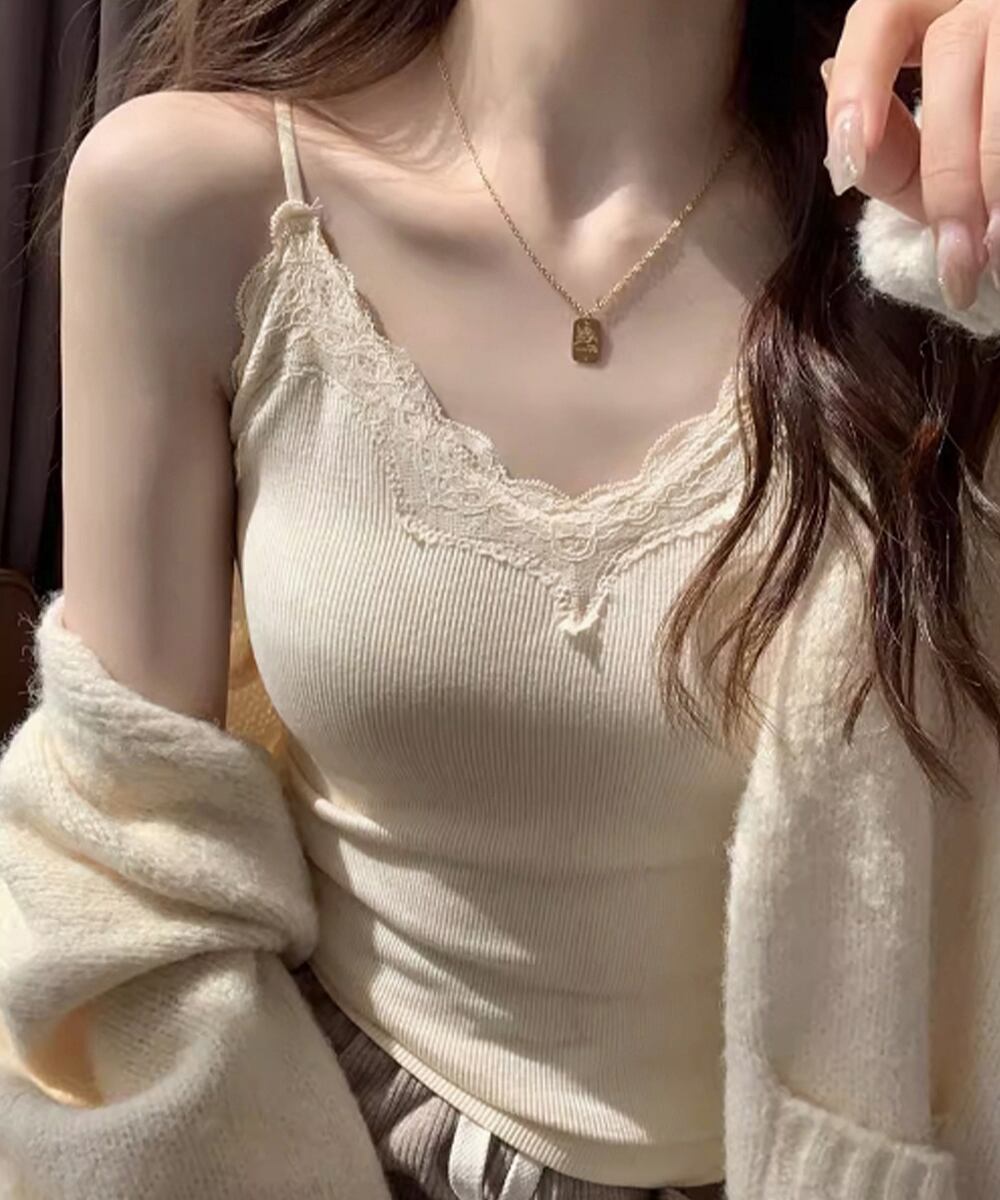 カップ付きキャミソールレーストリムキャミ