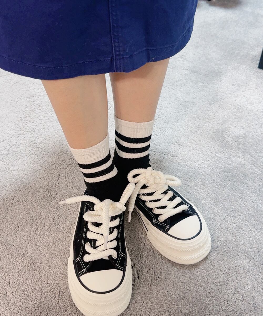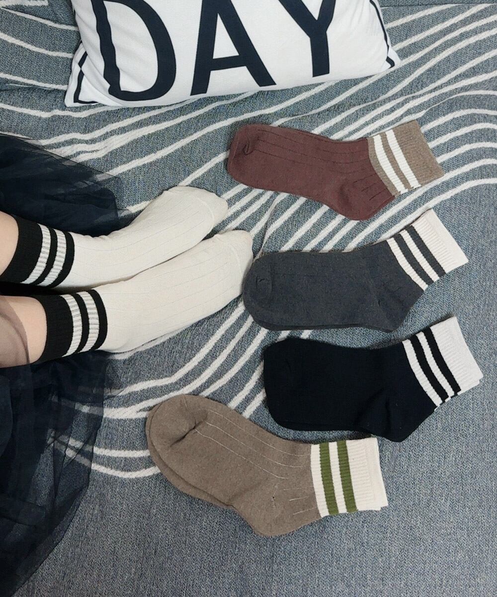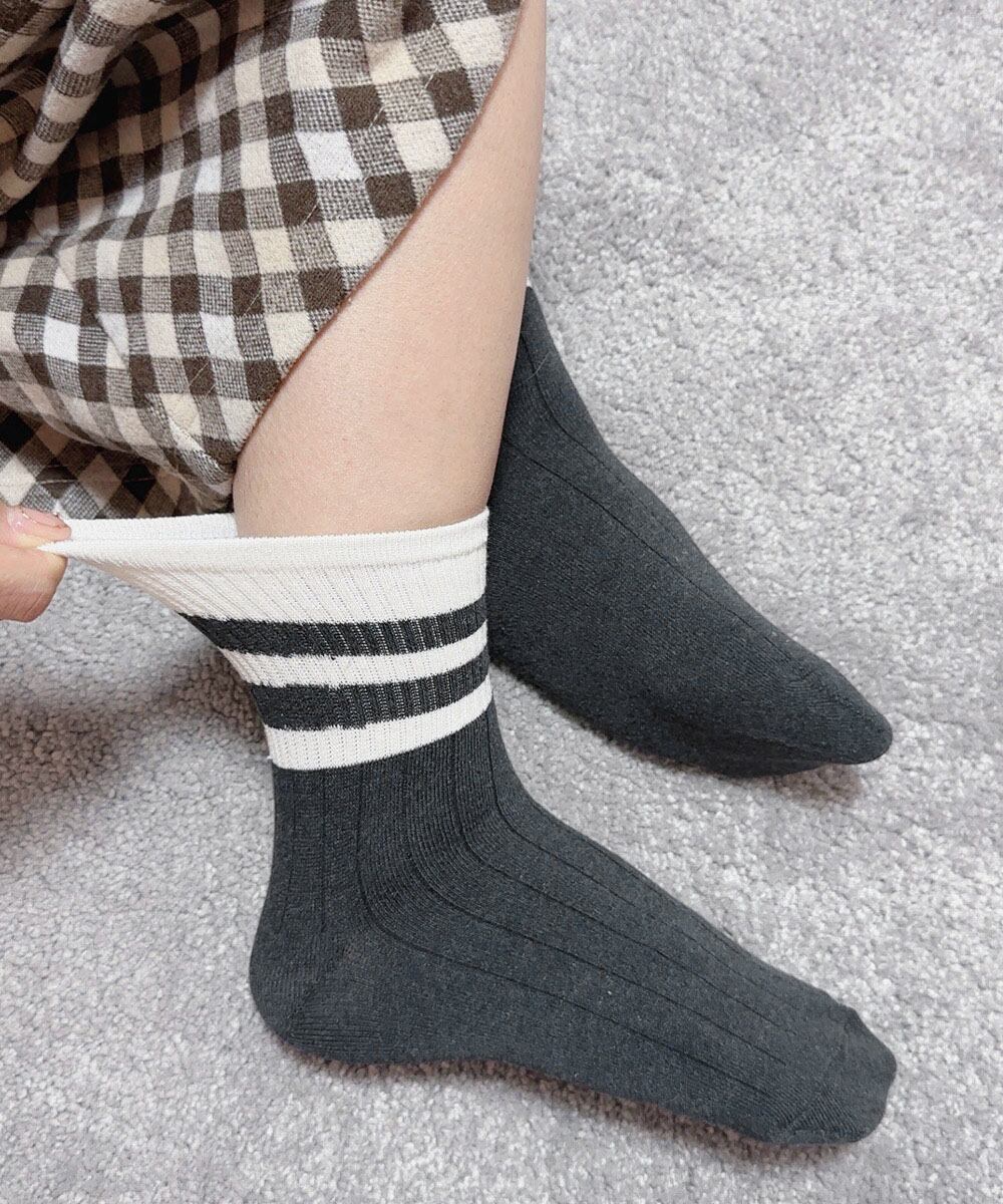 ボーダーソックス 蒸れない 韓国ソックス あったか靴下 足元温めるグッズ おしゃれソックス ハイカット スポーツソックス