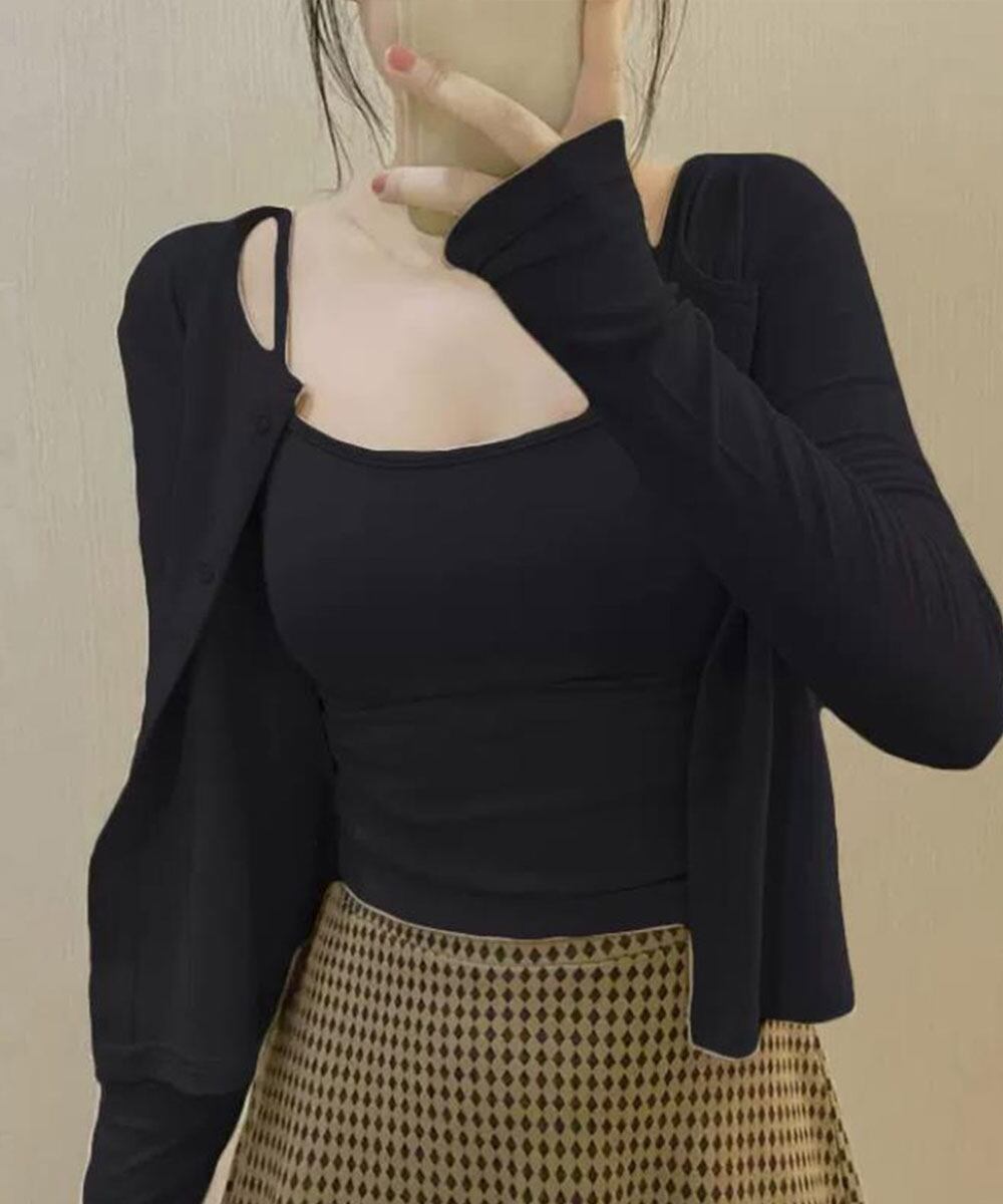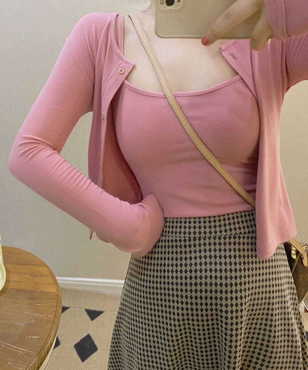 着回しに便利な、カーディガンとキャミソールのセット。