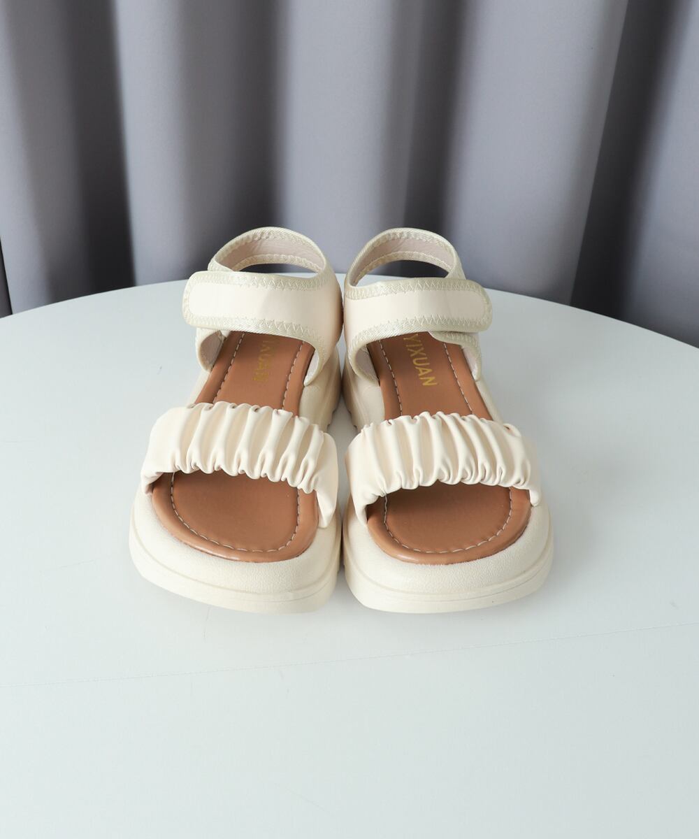 レディース ギャザー ベルトサンダル マジックテープ 履きやすい カジュアルシンプル コンフォート 疲れない靴 海ビーチ