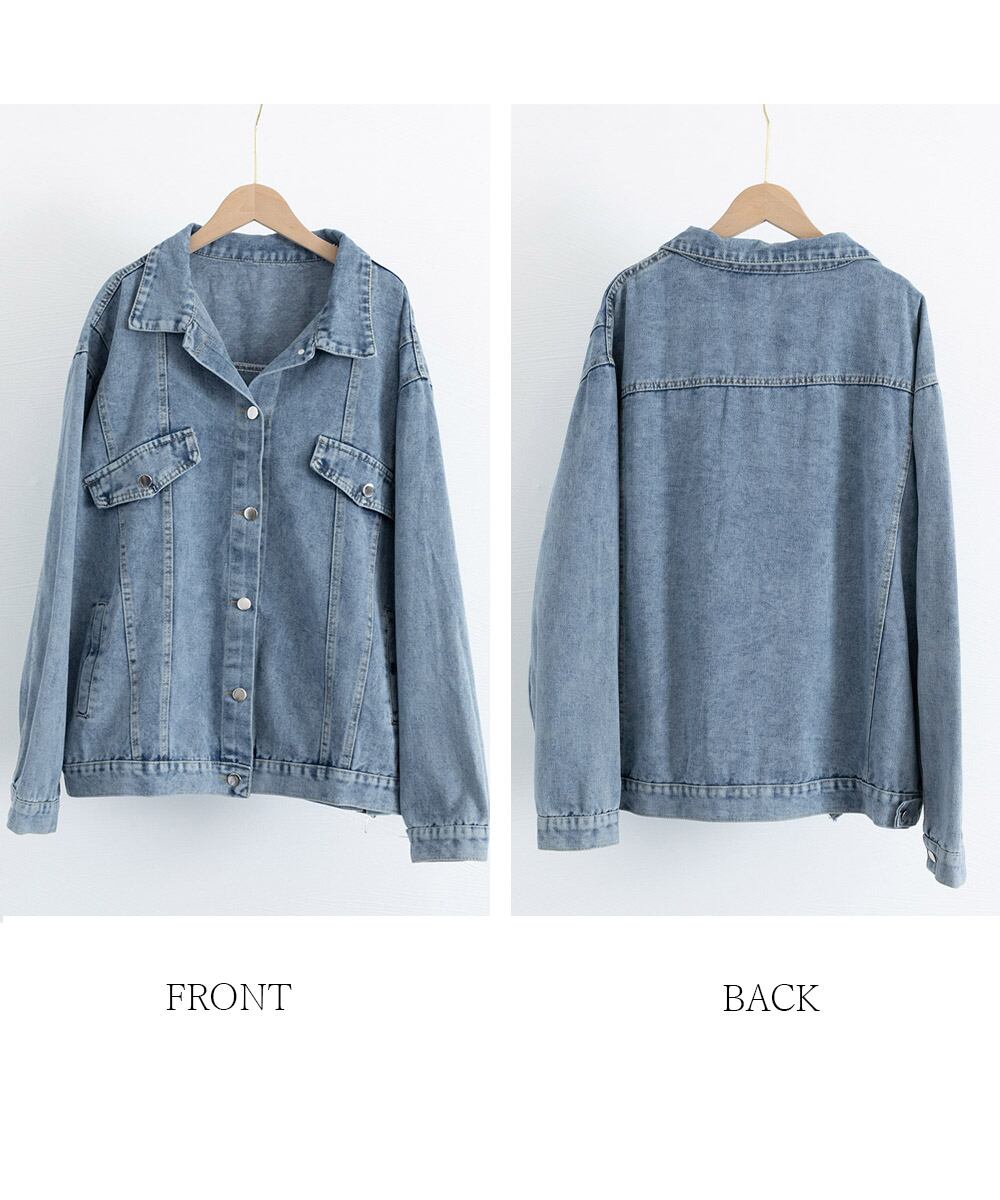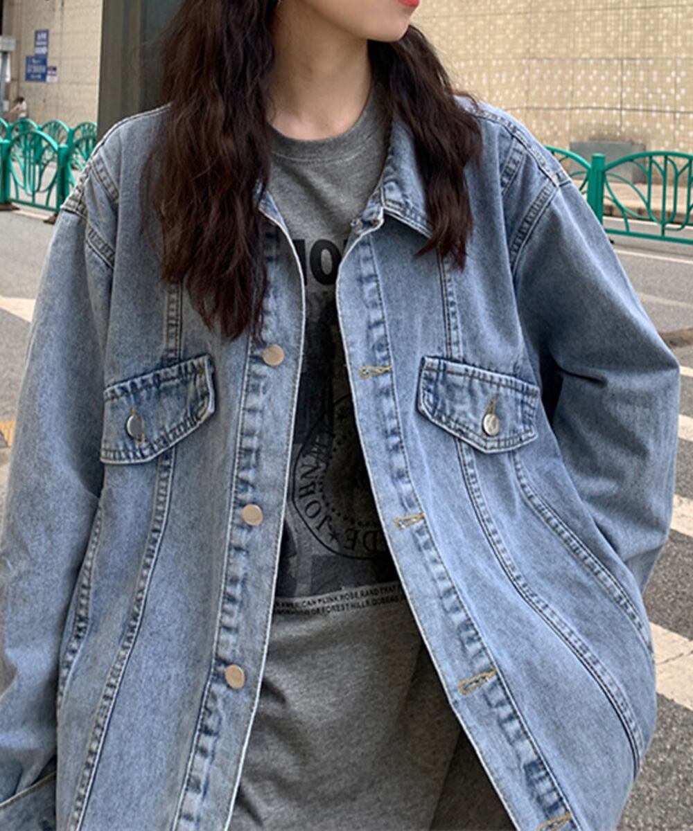 レディース ビッグシルエットジャケット ストリート風 デニム羽織 長袖トップス 無地 ジージャン大人カジュアル体型カバー