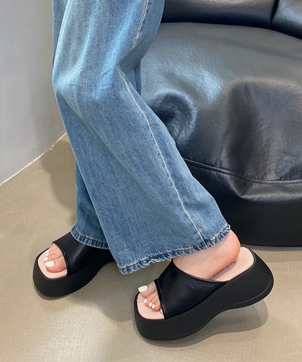 シンプルでカジュアルな雰囲気のミュールサンダル。
