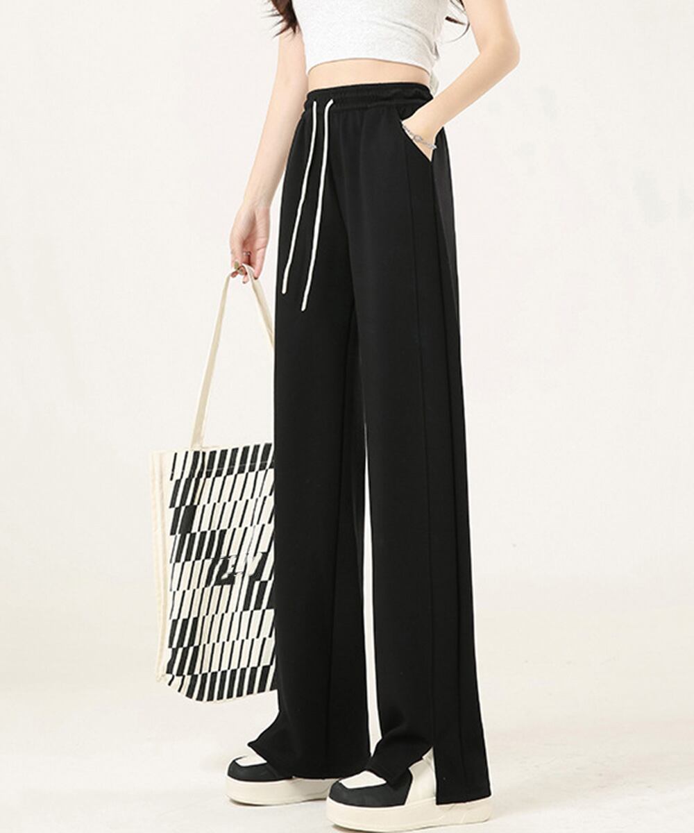 サイドスリットワイドパンツ  ゆったり ワイドイージーパンツ ドローストリング ウエストゴム ジョガーパンツ ポケット付