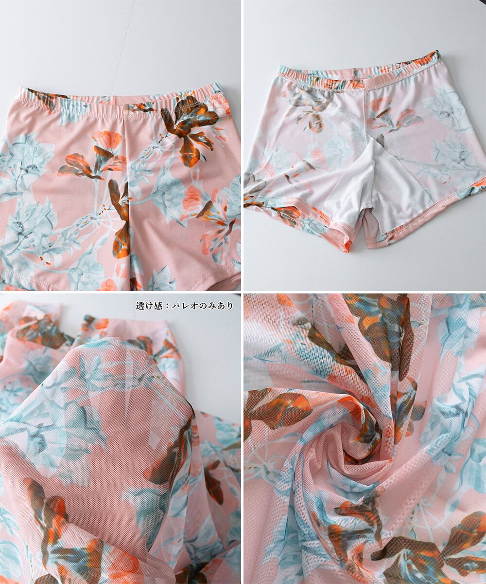 花柄水着セット ホルターネックタンキニ ボクサーパンツ 巻きスカート 体型カバー水着 セパレート 大人可愛いスイムウエア
