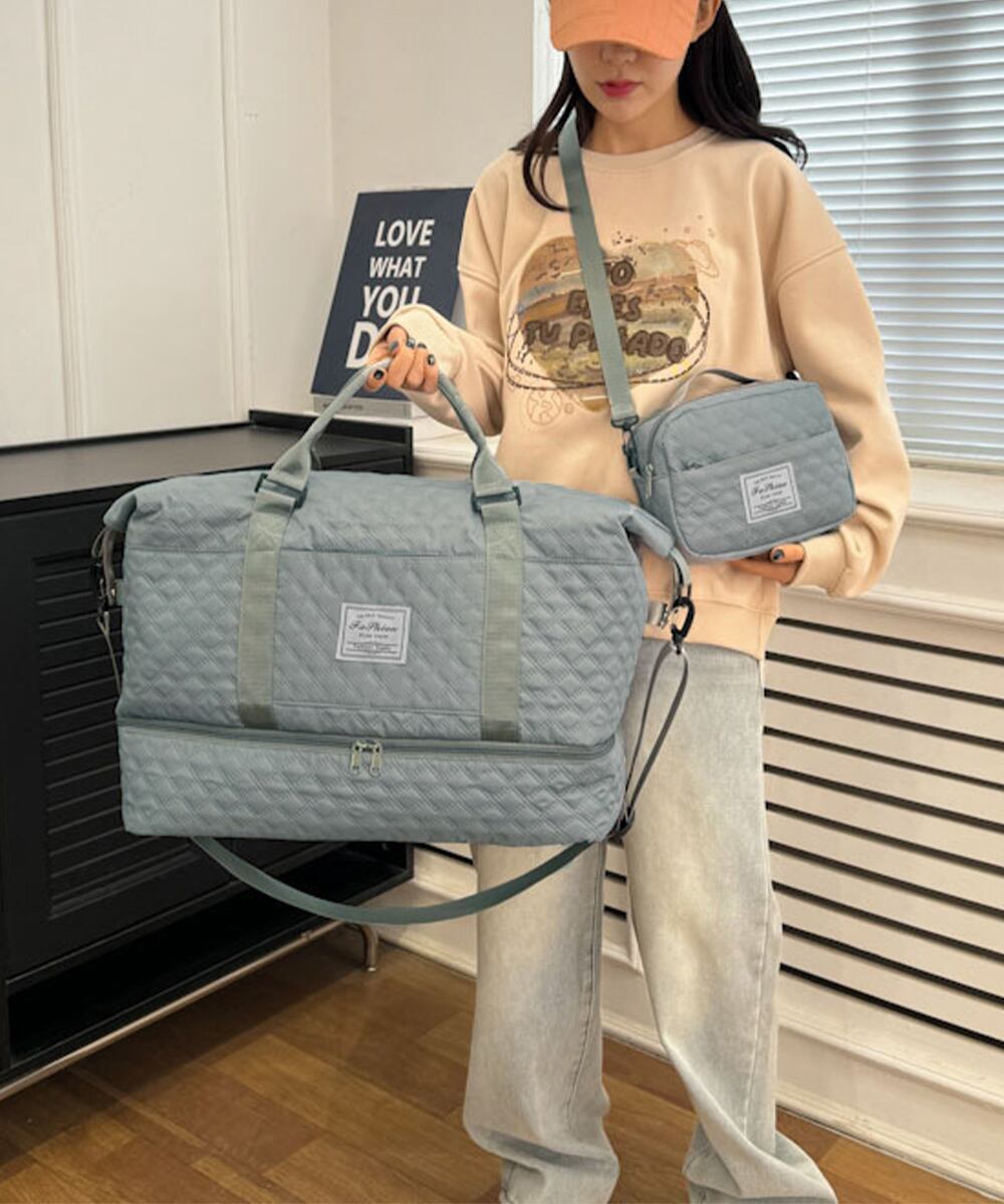 ボストンバッグには1~2泊程度の荷物、ショルダーバッグには化粧道具やスマホ、お財布などをたっぷり収納して持ち運べる
