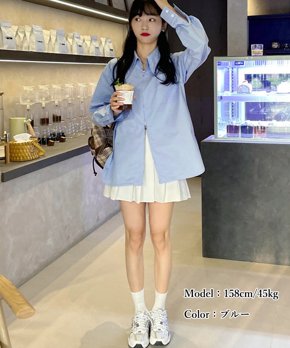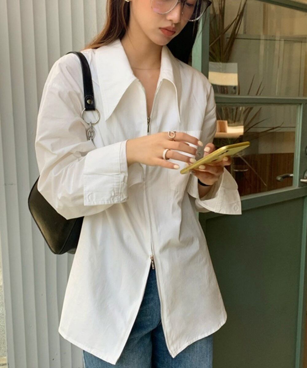 シンプルながらもデザイン性のあるダブルジップアップシャツ