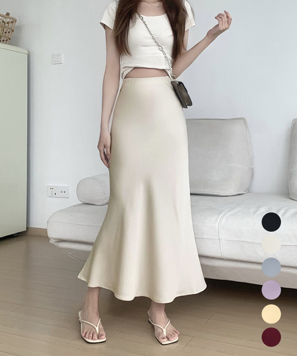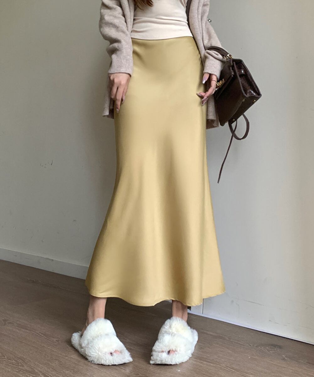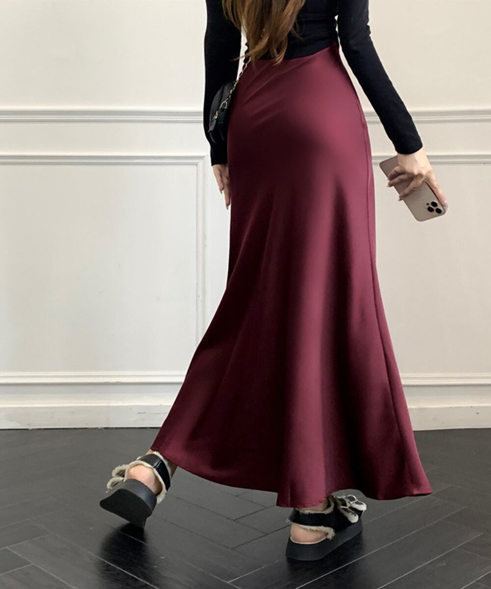 滑らかな光沢素材で高貴な印象を与えてくれるサテンスカート