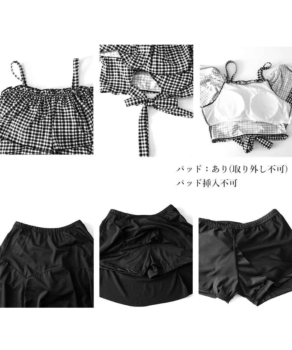 ギンガムチェック セパレート水着 レディース 露出控えめ ハイウエスト パンツ付きミニスカート 2点セット水着大人可愛い