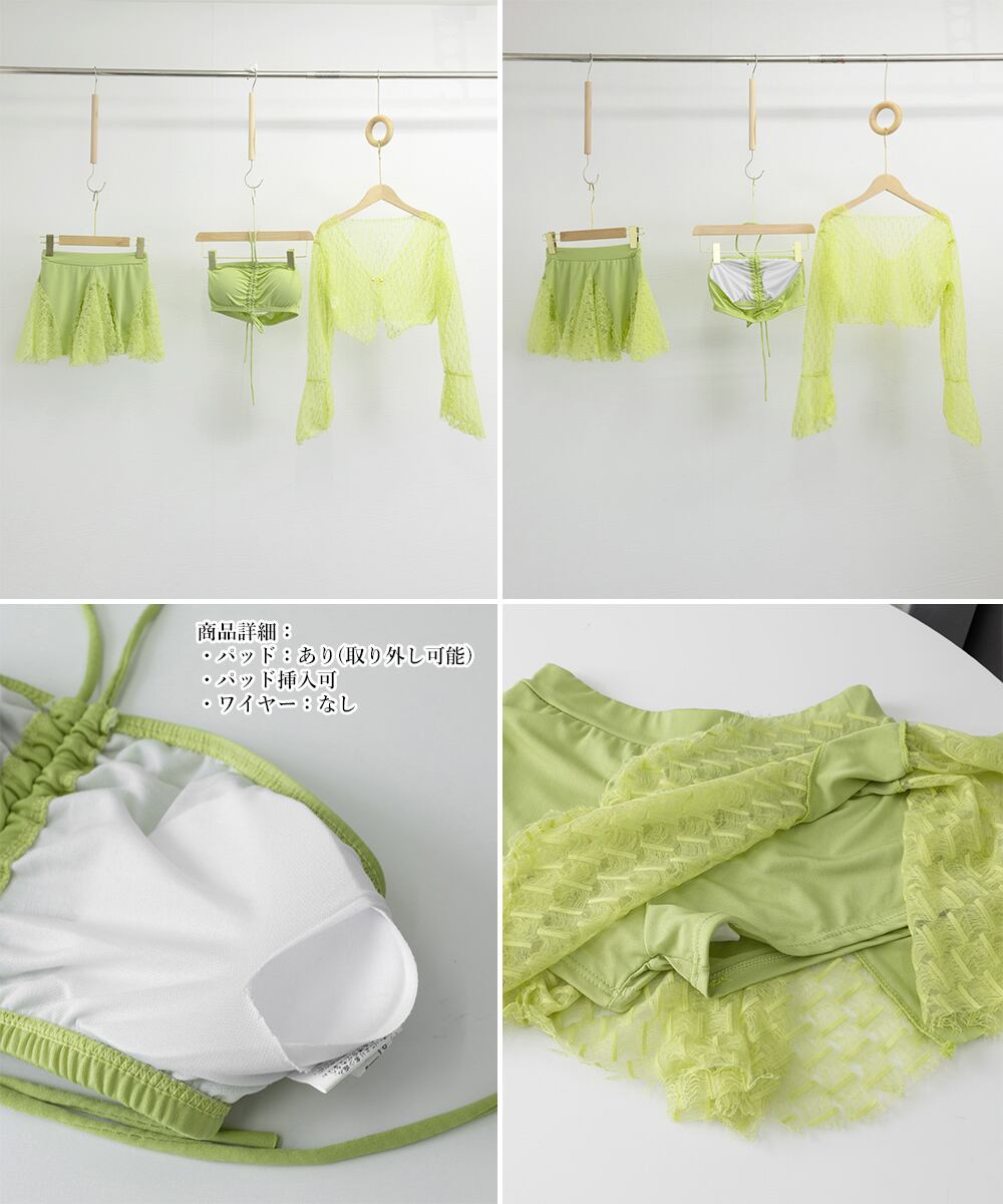 レースアップ ホルターネック水着 ジャガードレースラッシュガード バンドゥビキニ 3点セット 大人セパレート水着 水遊び