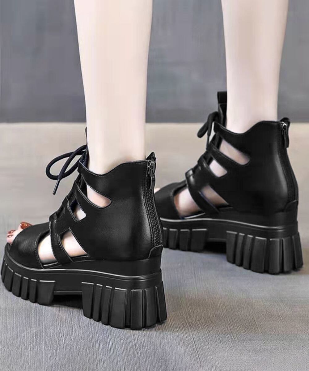 歩きやすい厚底サンダル 美脚脚長 レースアップシューズ サマーブーツサンダル ハイカットサンダル編み上げ 痛くない 韓国