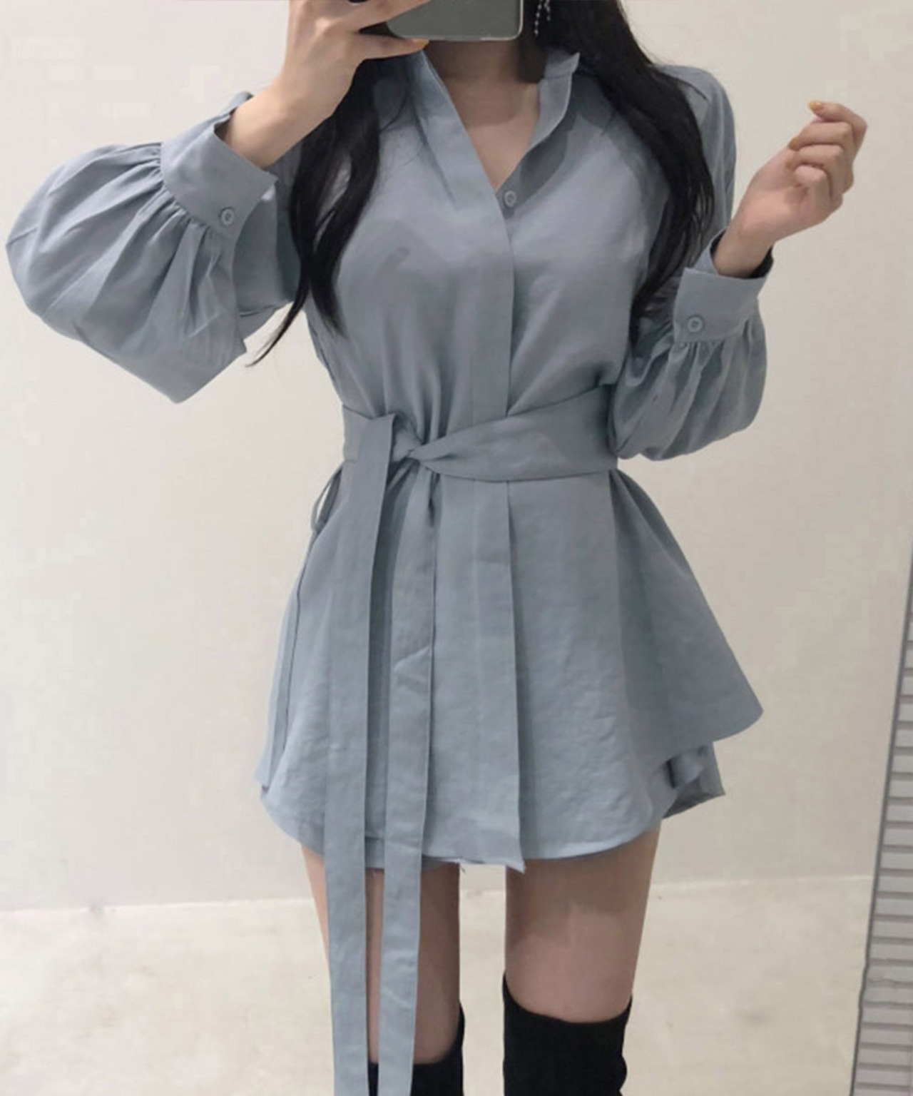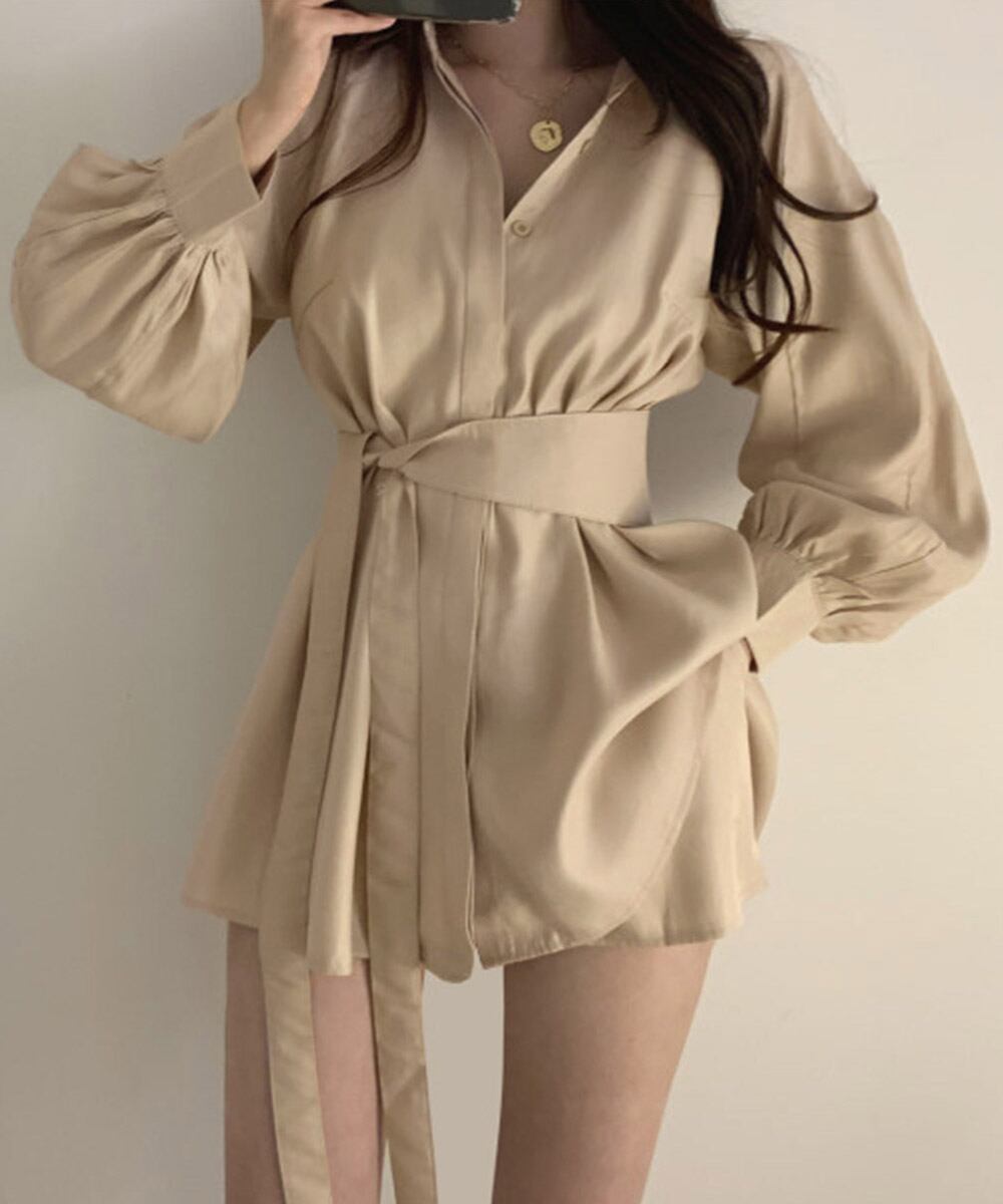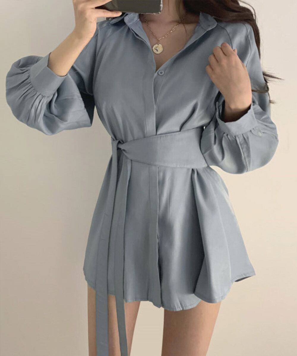 きれいめ ボリューム袖 薄手 襟付き 体型カバーワンピ オルチャン 女性らしい おしゃれ ショート丈 ミニワンピース