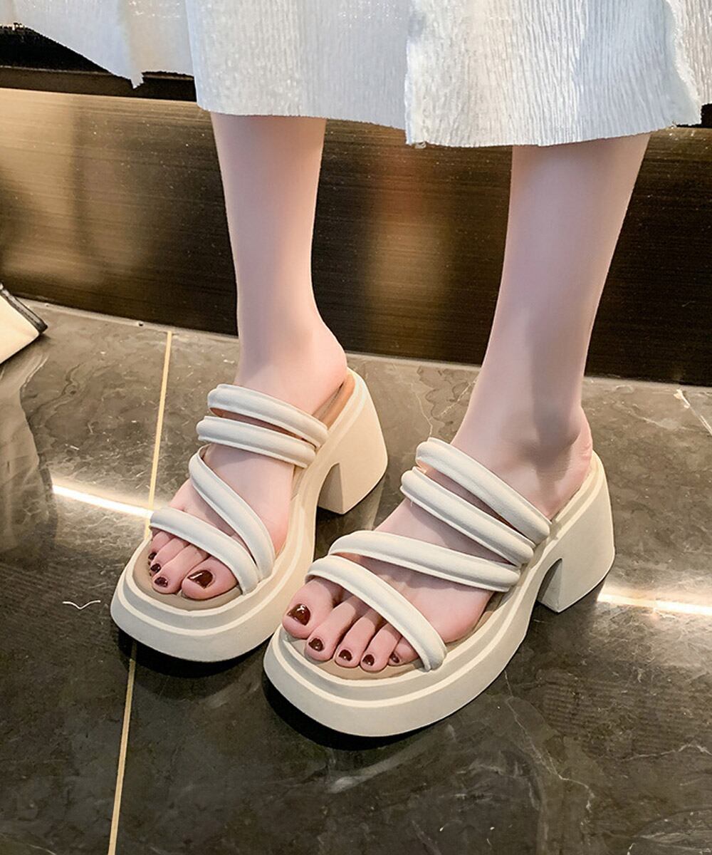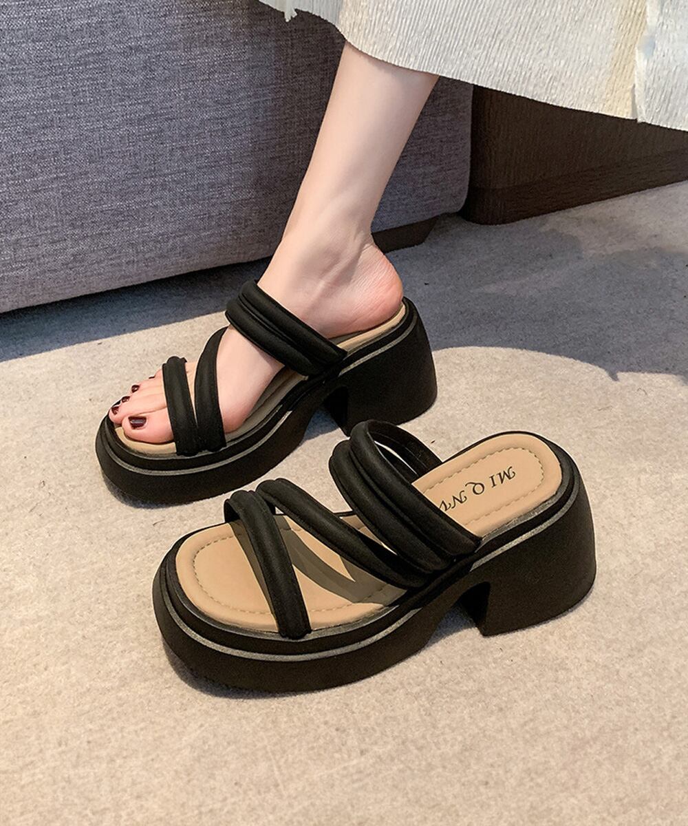 ミュールデザインでさっと履きやすい厚底サンダル。
