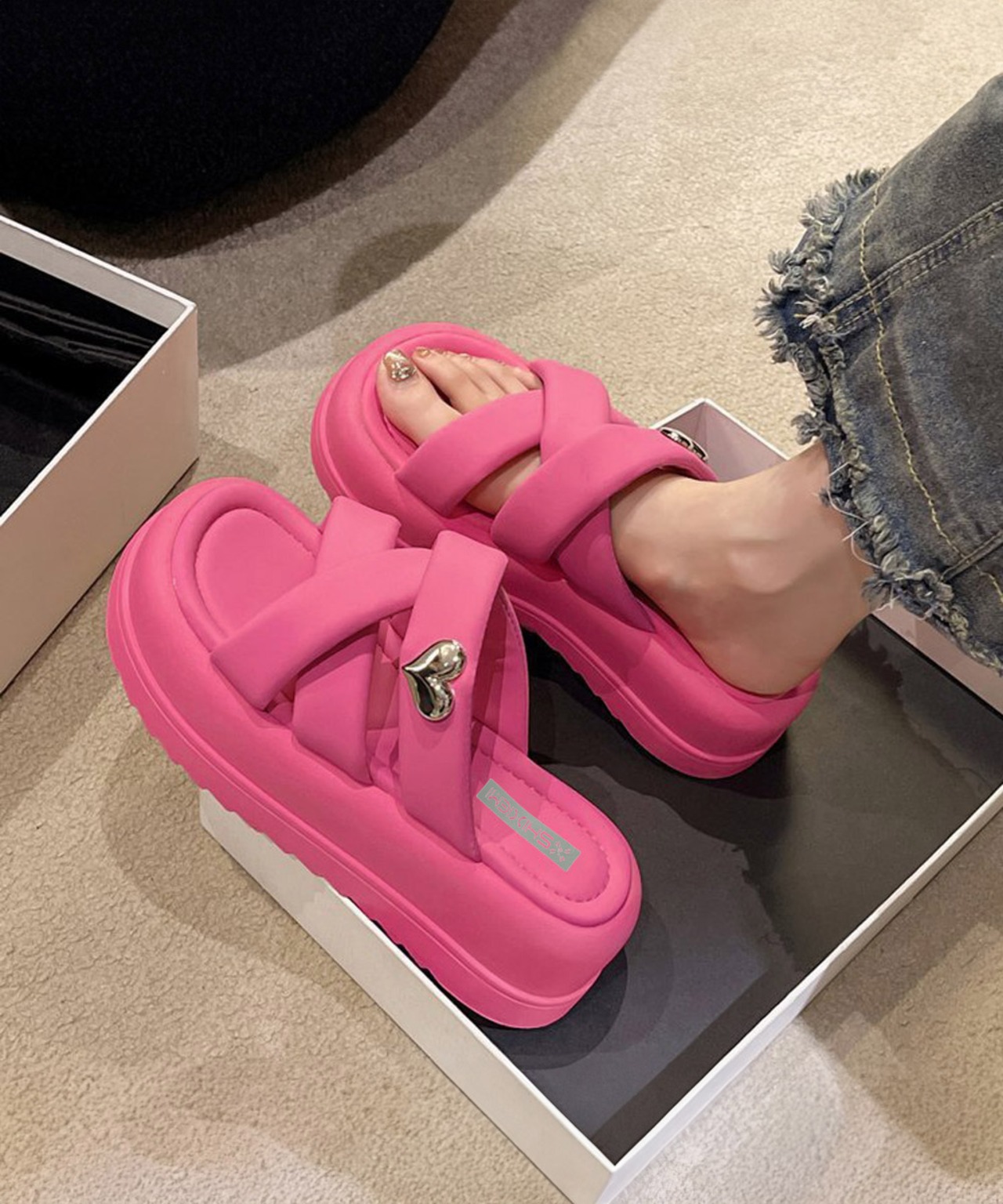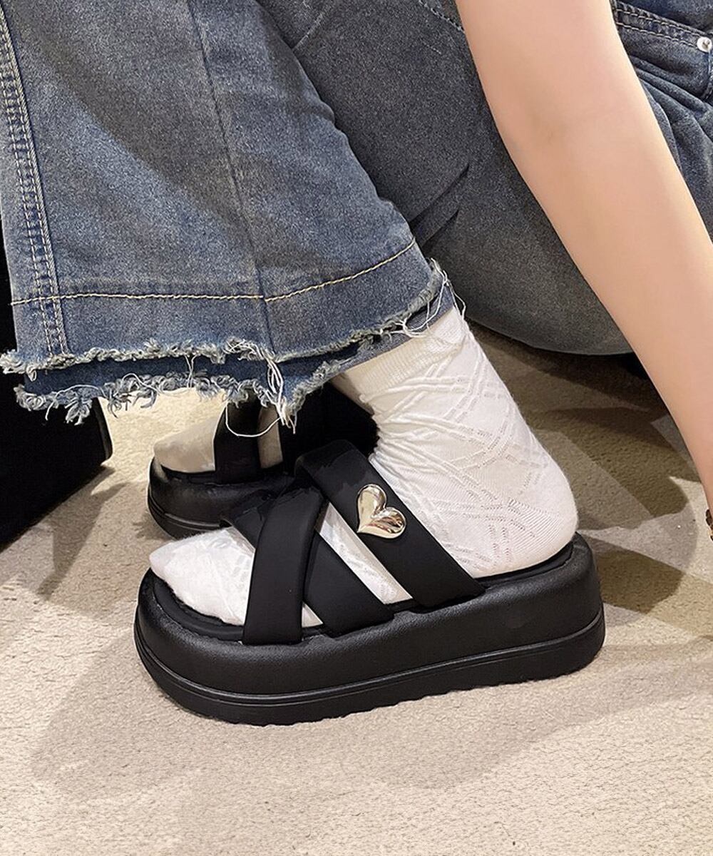 レディース ストラップサンダル フラットソール ハート飾りスリッパ おしゃれ 大人可愛い 海旅行 トラベル リゾートくつ