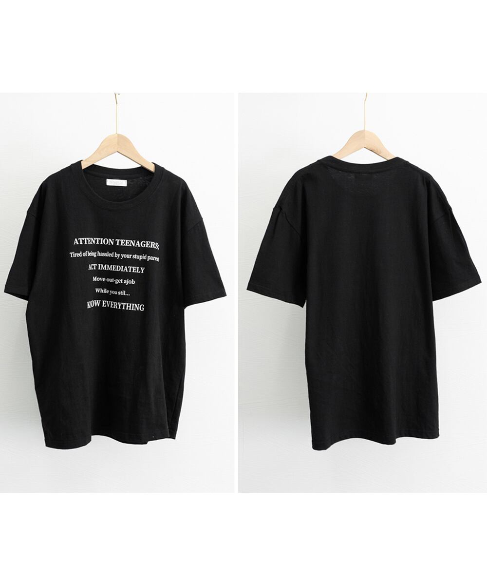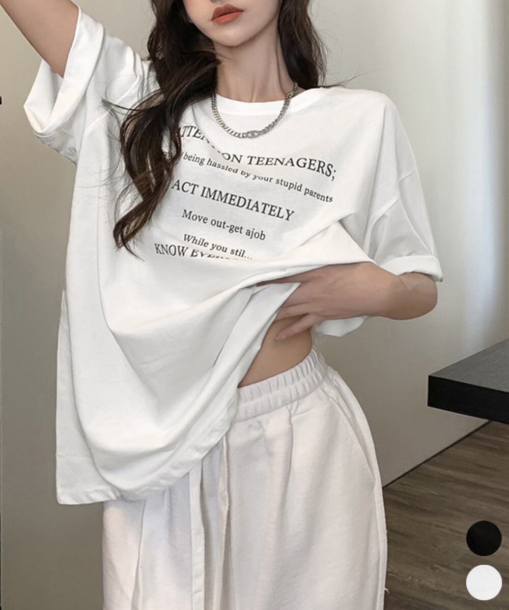 英字ロゴカットソー ラウンドネック 着やせプルオーバー おしゃれカットソー 体型カバートップス 大人カジュアル Tシャツ