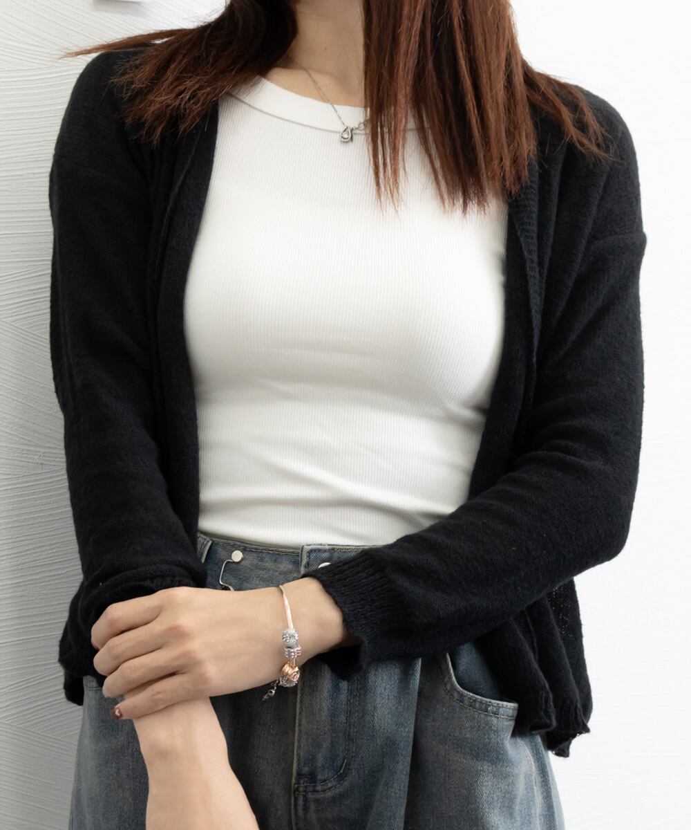 ボタンがないデザインはインナーとの重ね着も楽しめる