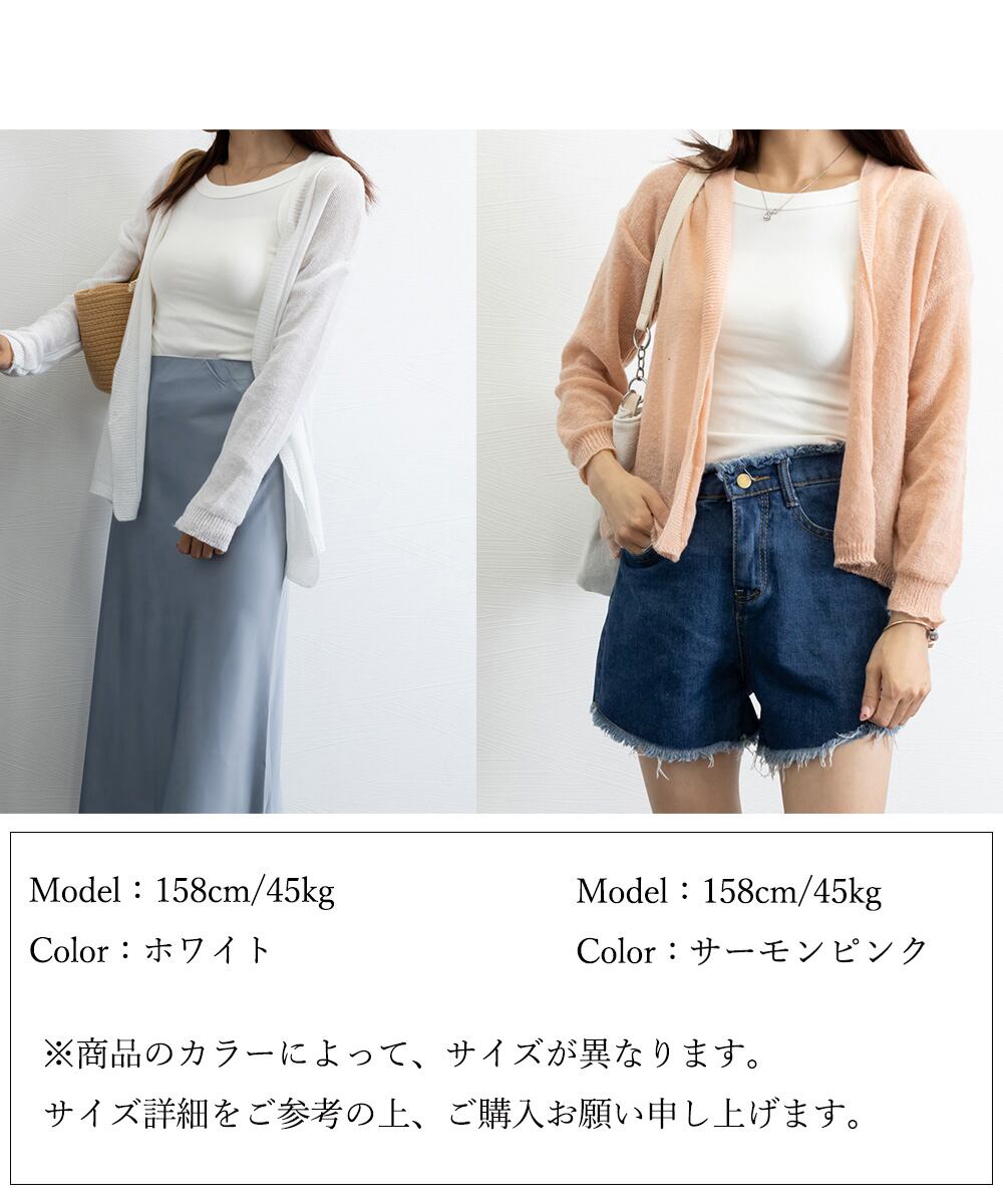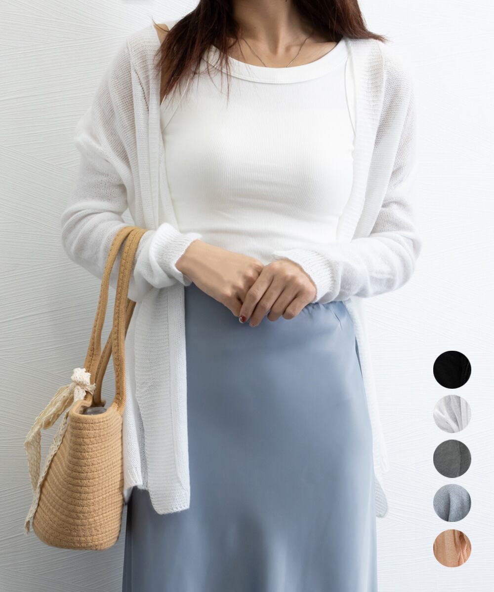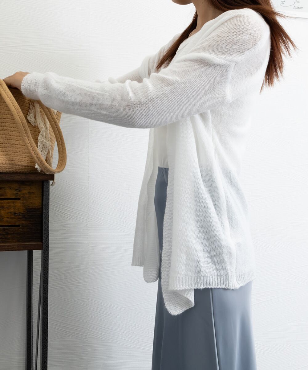 透け感が女性らしい、薄手ニット素材のカーディガン
