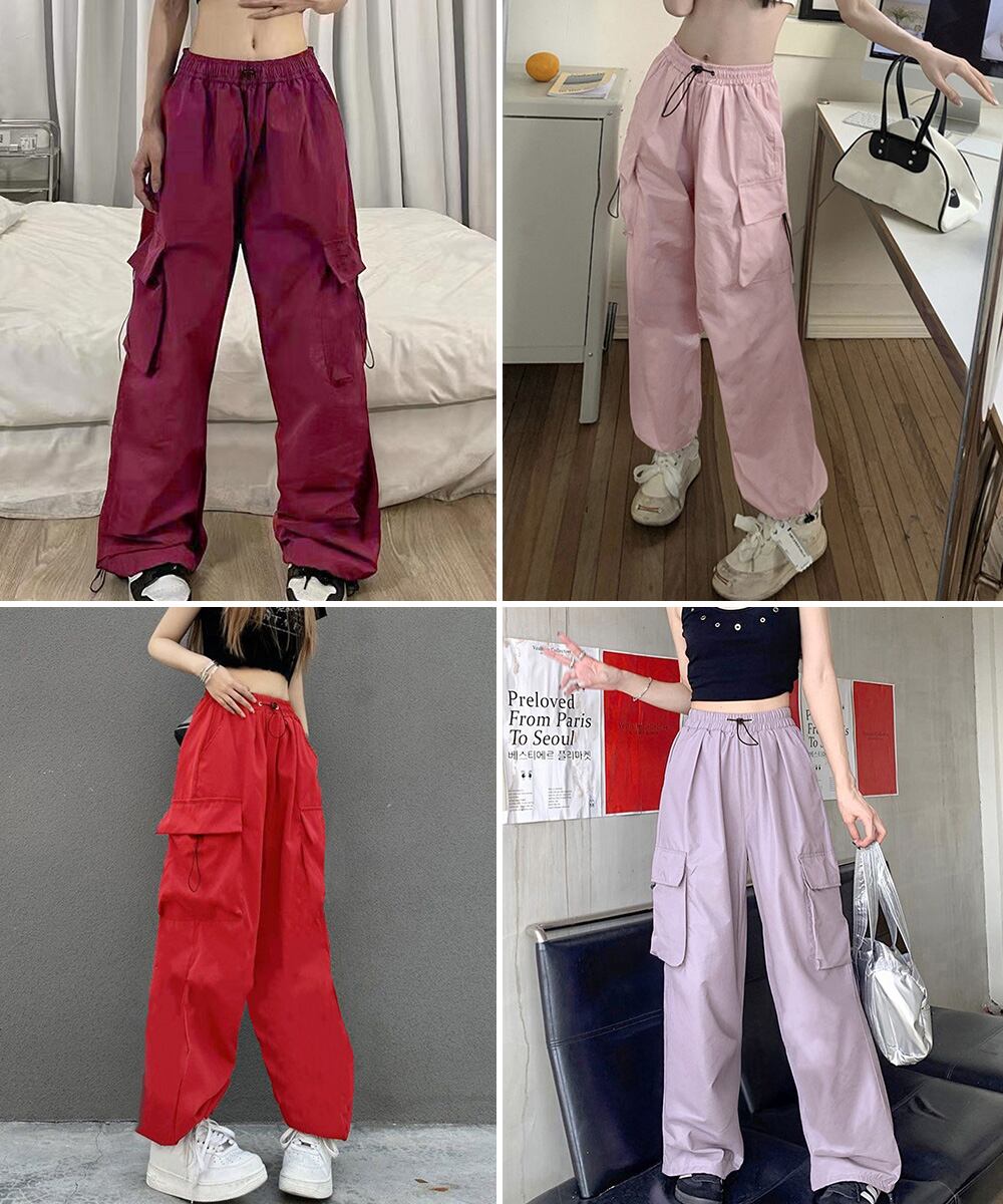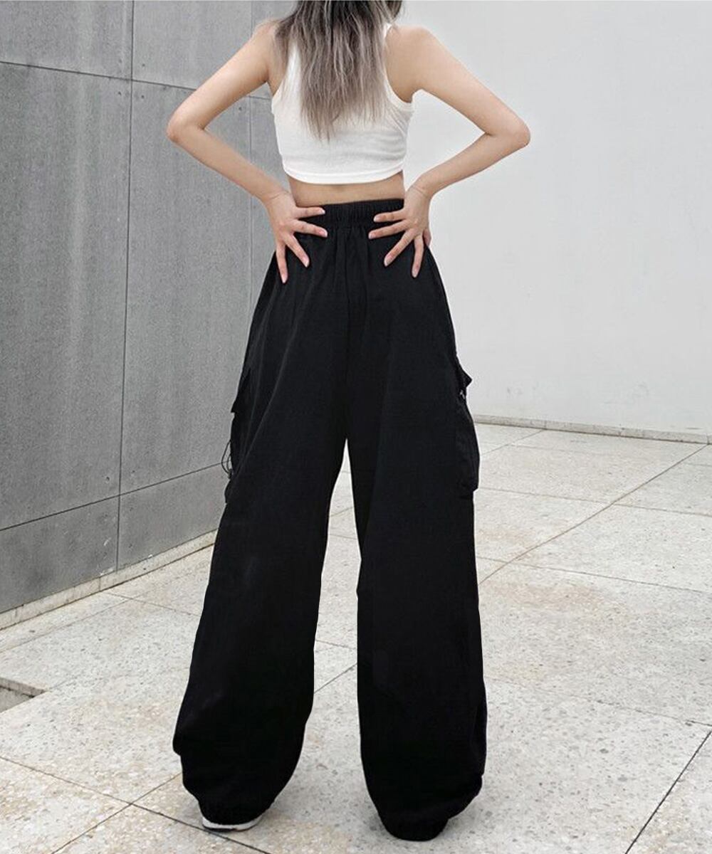 ミリタリーパンツ 薄手パラシュートパンツ 春夏スポーツパンツ ダンス衣装 韓国風 ウエストゴム ストリート ワイドパンツ