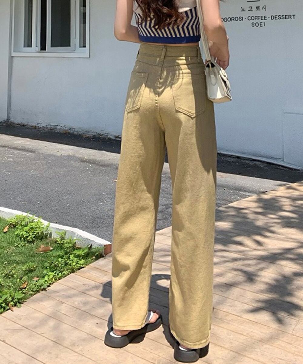 レディース ストレートデニム ゆったり キャンディーカラー ロングパンツ カジュアル ワイドパンツ お洒落ジーパン 脚長