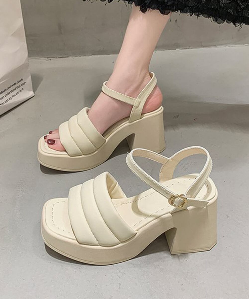 ミュール厚底サンダルスクエアトゥ 韓国風