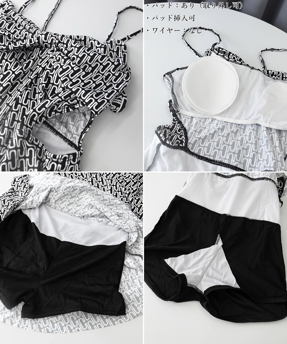 大人かわいい体型カバーとお洒落な肌チラ見せが特徴の総柄ワンピース水着
