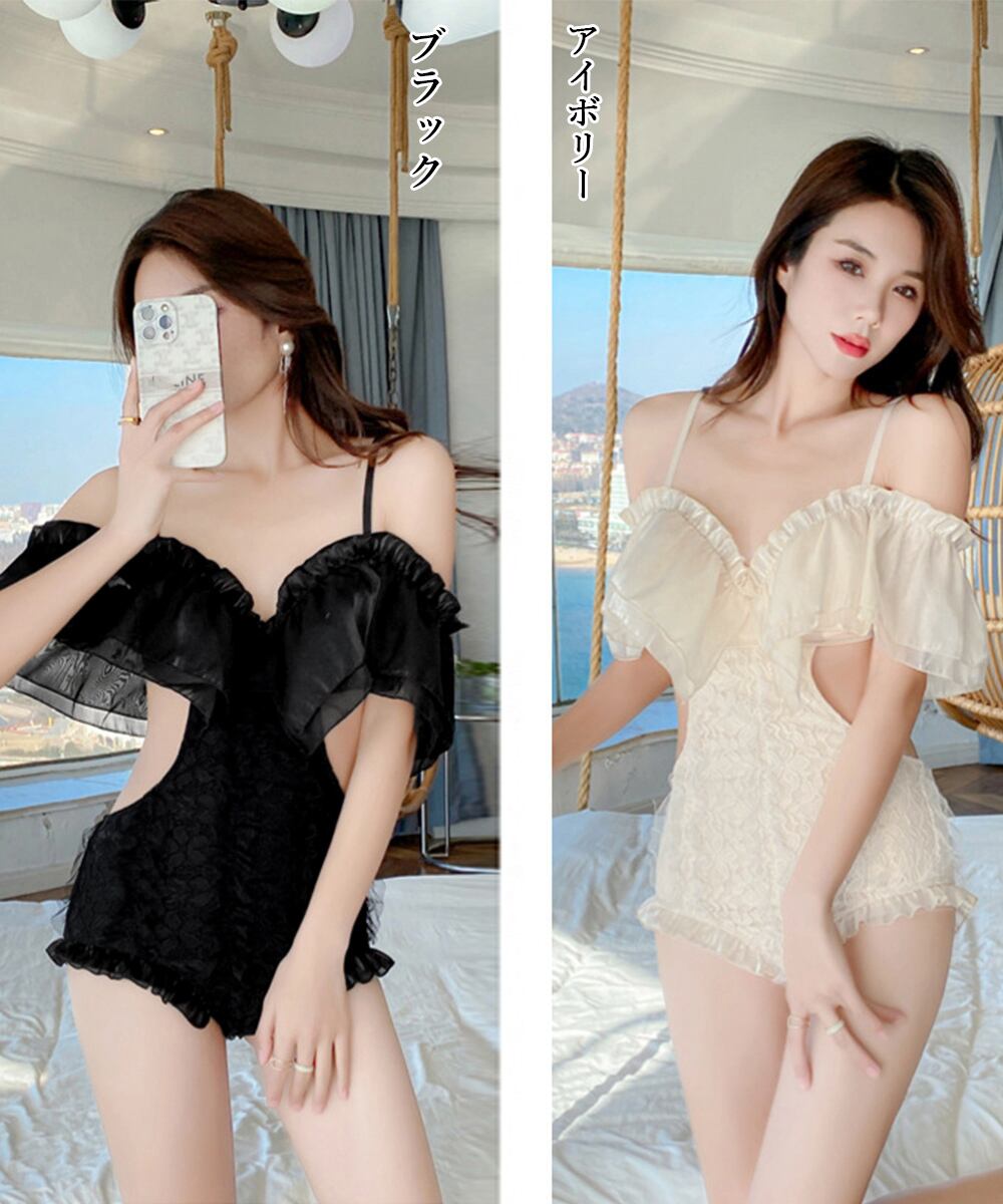 ビッグフリル オフショルダー 可愛い水着 スイムウェア セクシーオールインワン水着 オトナ女子ビーチ海水浴 チュール水着