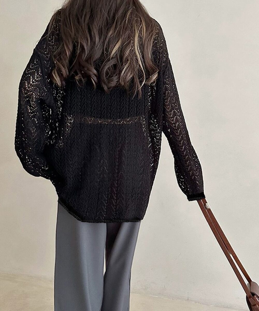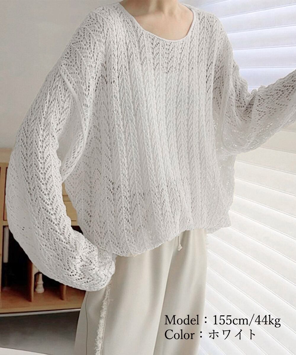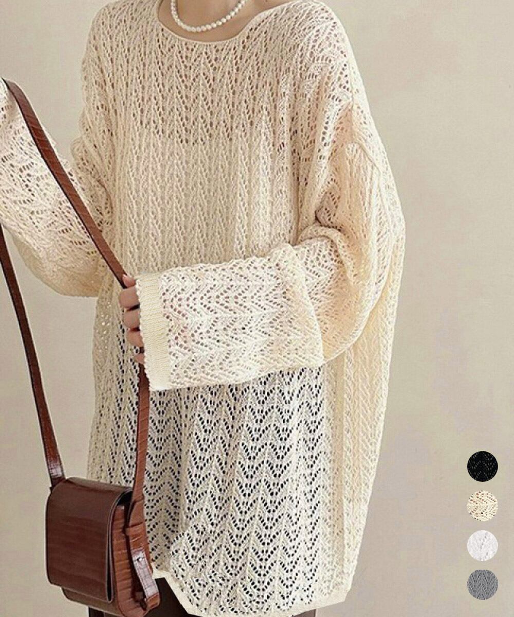 20代30代ニット 薄手透け感トップス クロシェ編み 長袖