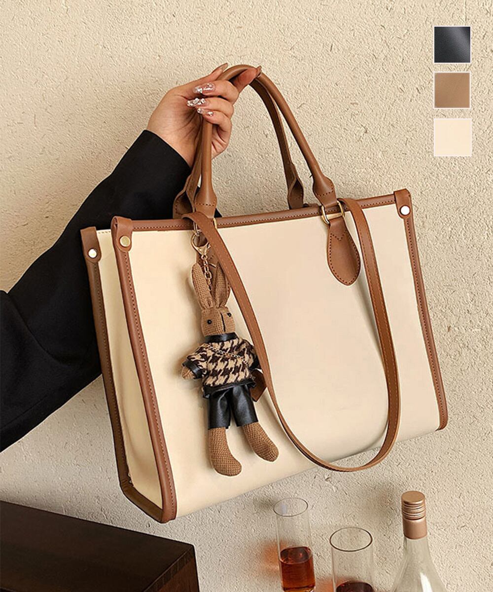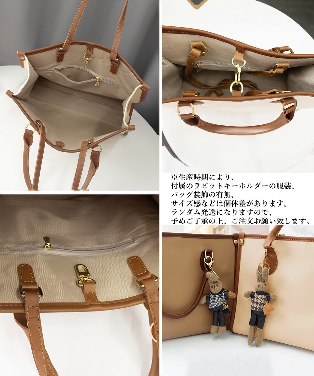 可愛らしいウサギのバッグチャームがアクセントとなり、バッグ全体に遊び心をプラス