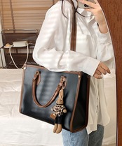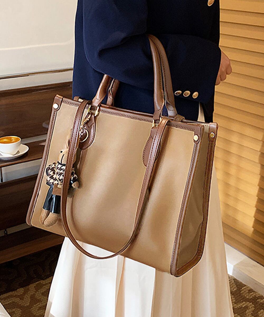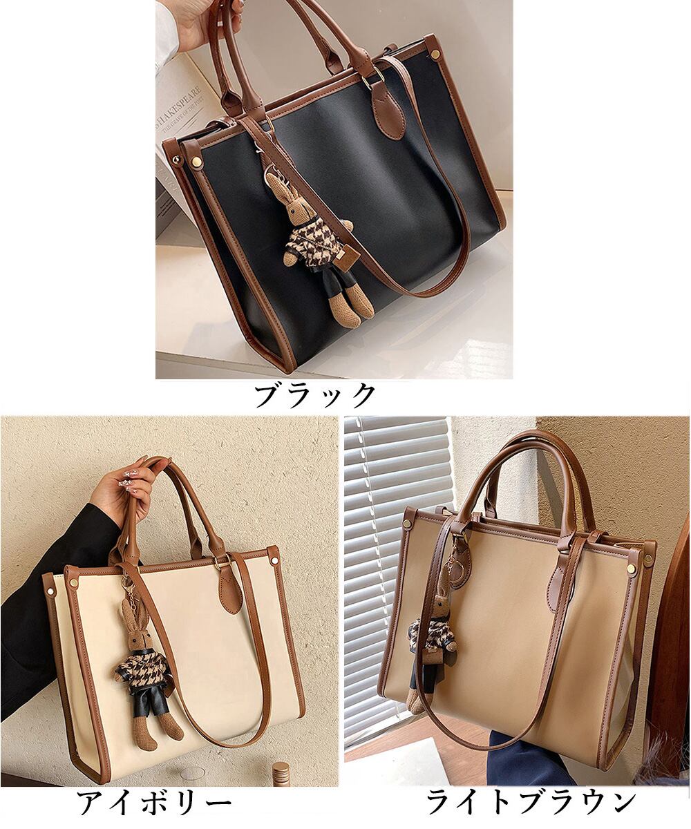 おしゃれ 2way 大きめハンドバッグ チャーム付きOLバッグ a4自立カバン PUレザー 大容量 肩掛けバッグ 韓国風
