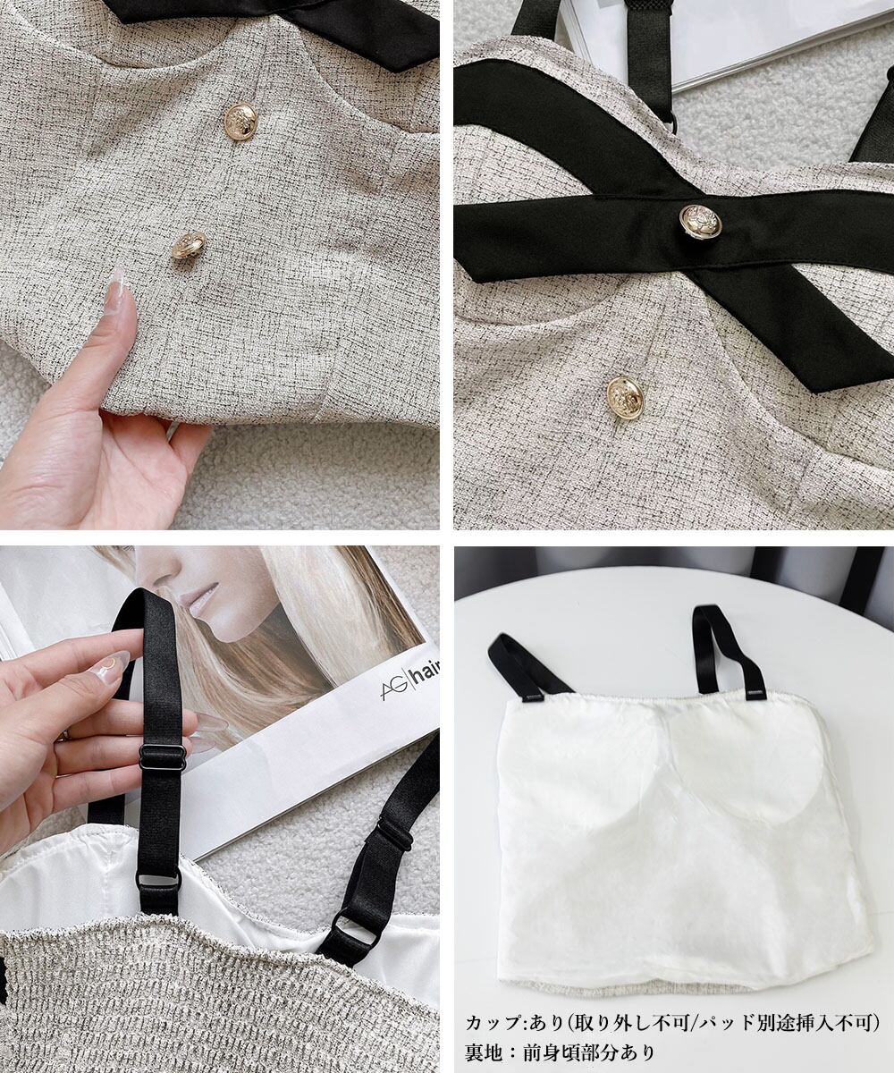 セクシーさと女子力を上げるツイード素材のキャミソールです。