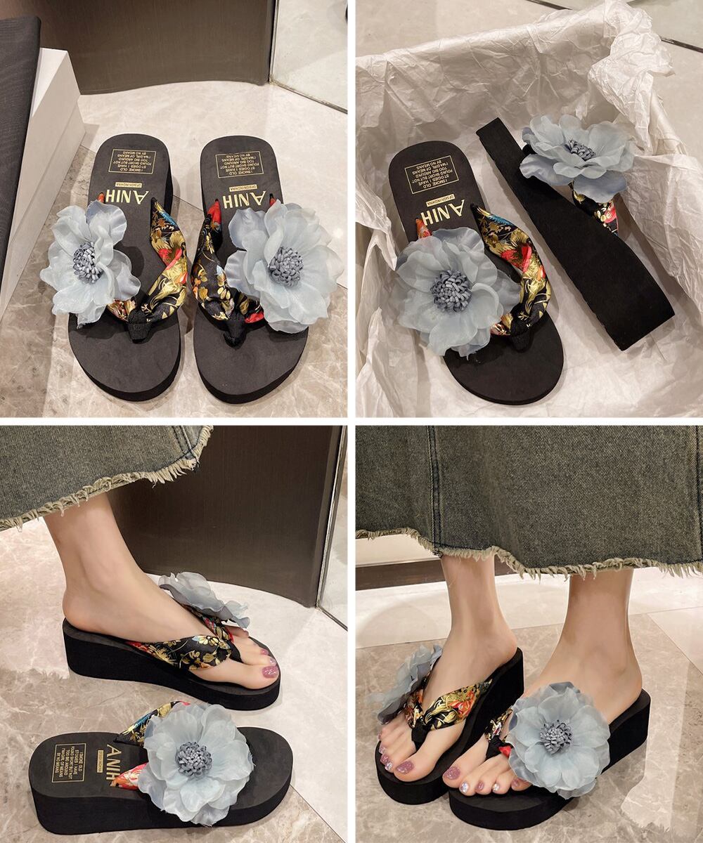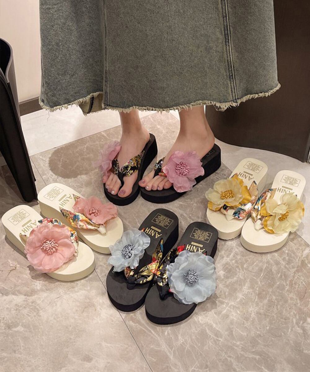 大きな花がアクセントになって足元を華やかに彩るビーチサンダル