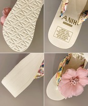 甲部分には滑らかなサテン生地と美しい花柄が華やかさを引き立て、夏のリゾートシーンに最適な一足