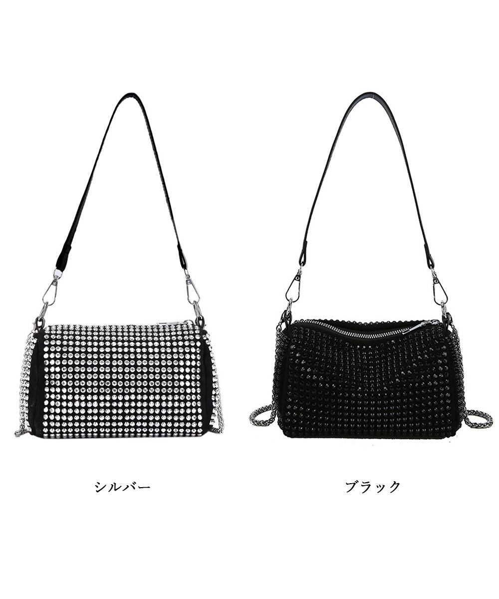 レディース ポシェット キラキラショルダーバッグ 2way 肩掛け チェーン ショルダー付き ハンドバッグ