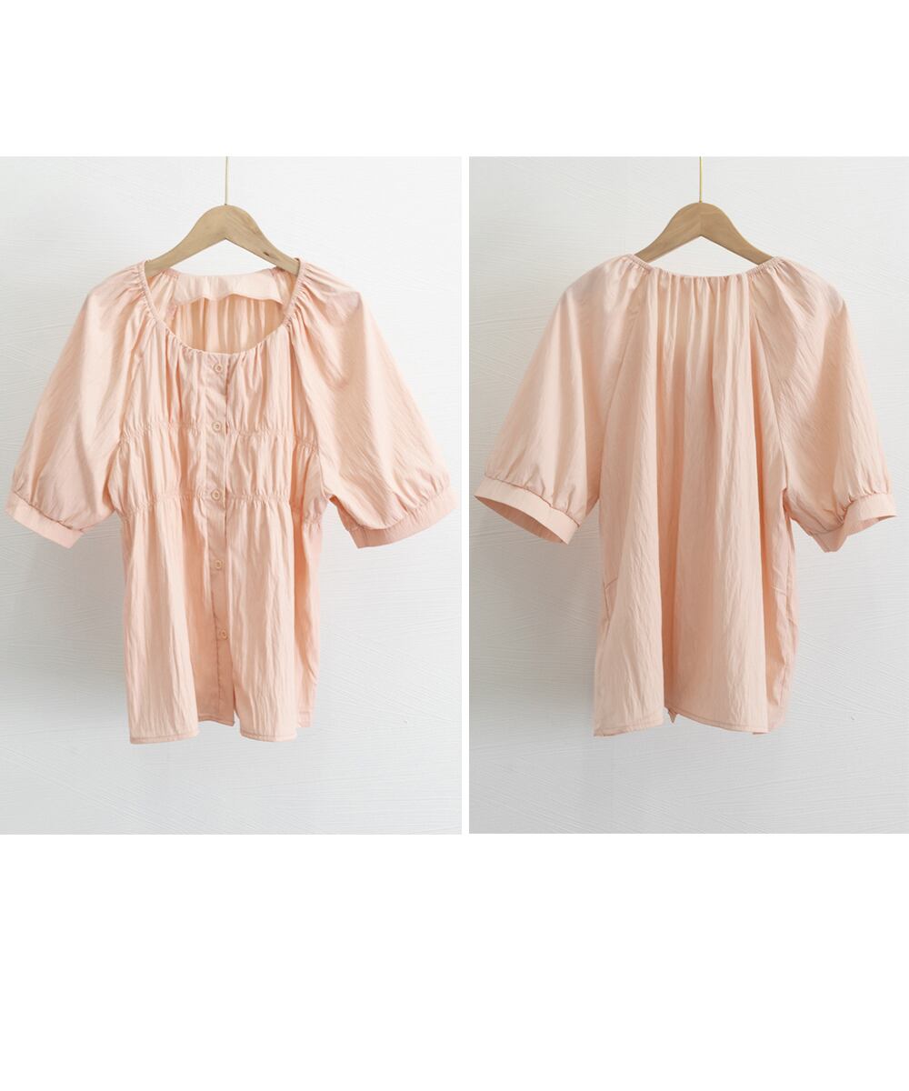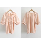 レディース パフスリーブブラウス 体型カバー ゆったり 大人可愛い 前開きブラウス お洒落 着やせ ラグランスリーブ夏服