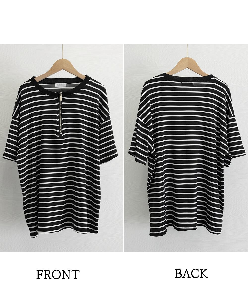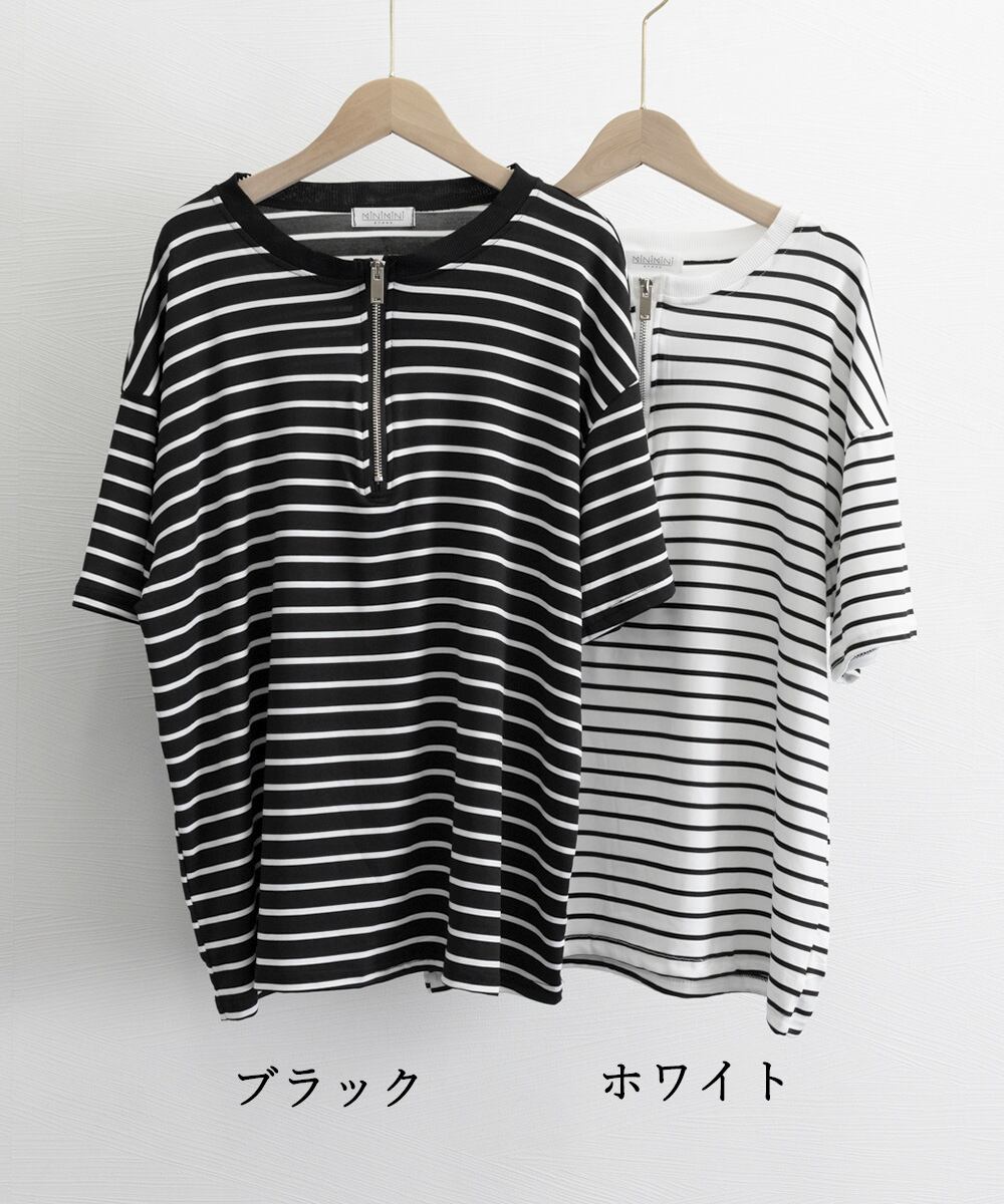 ハーフジップTシャツ 5分袖 着やせ 体型カバーカットソー ゆったり 大人カジュアル プルオーバーラウンドネック 韓国風