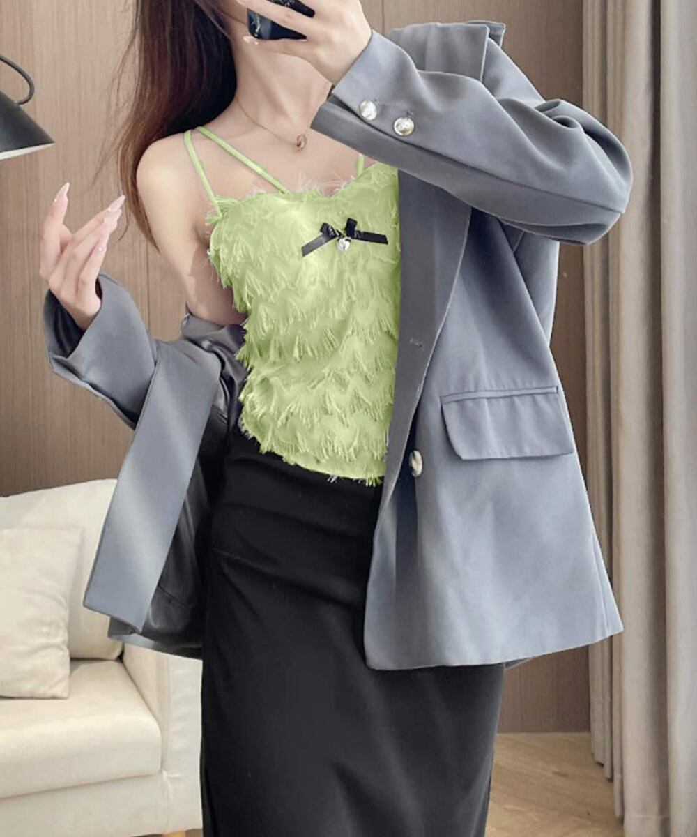 クロップド丈 見せインナー バックシャーリング セクシーキャミ 背中見せインナートップス ノンワイヤー リボンキャミブラ