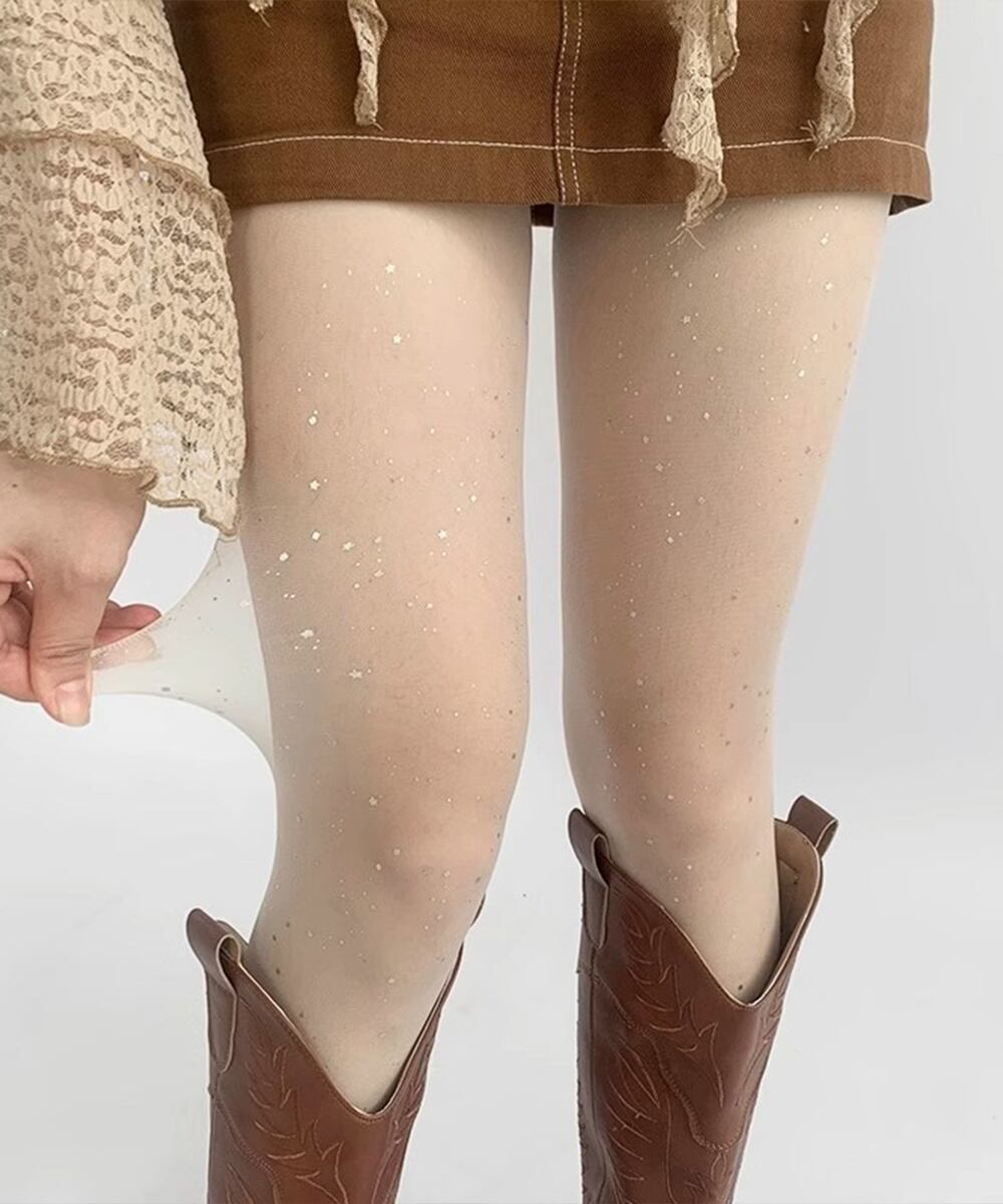 スパンコールタイツ 透け感 タイツ 美脚ストッキング
