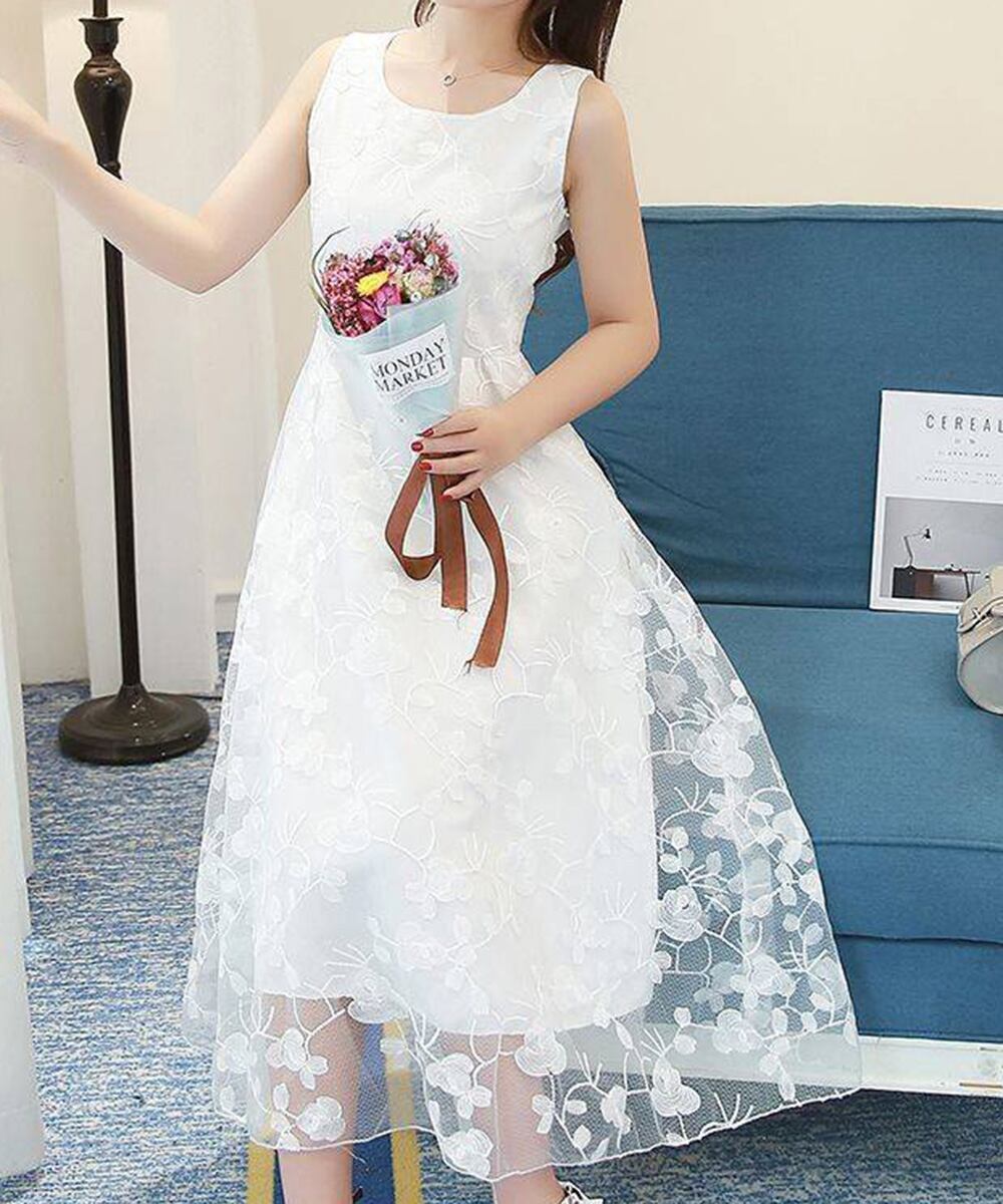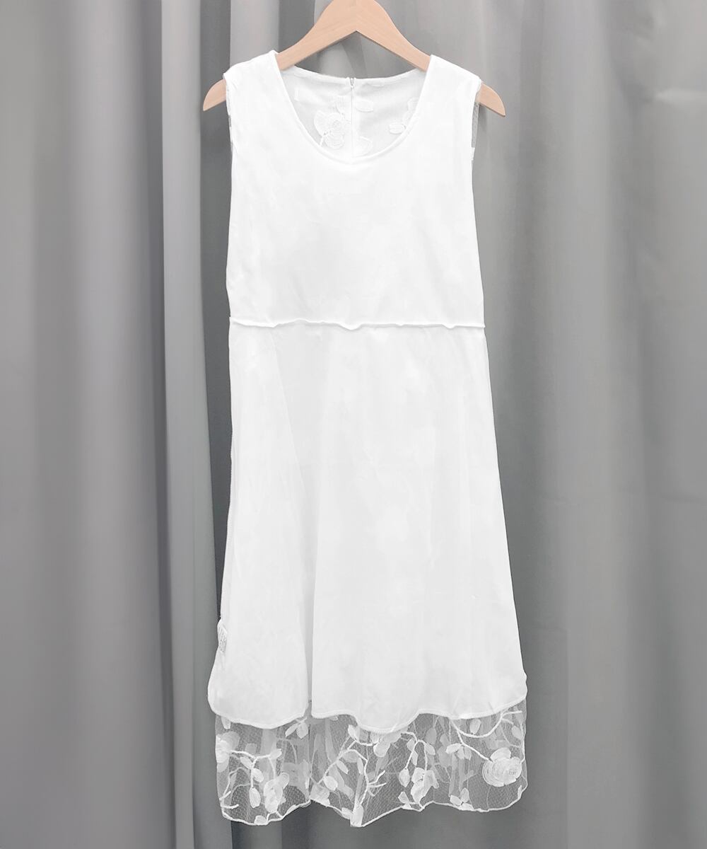 爽やかなノースリーブデザインと、Aラインに広がるフレアなシルエットで、大人可愛い雰囲気がアップ