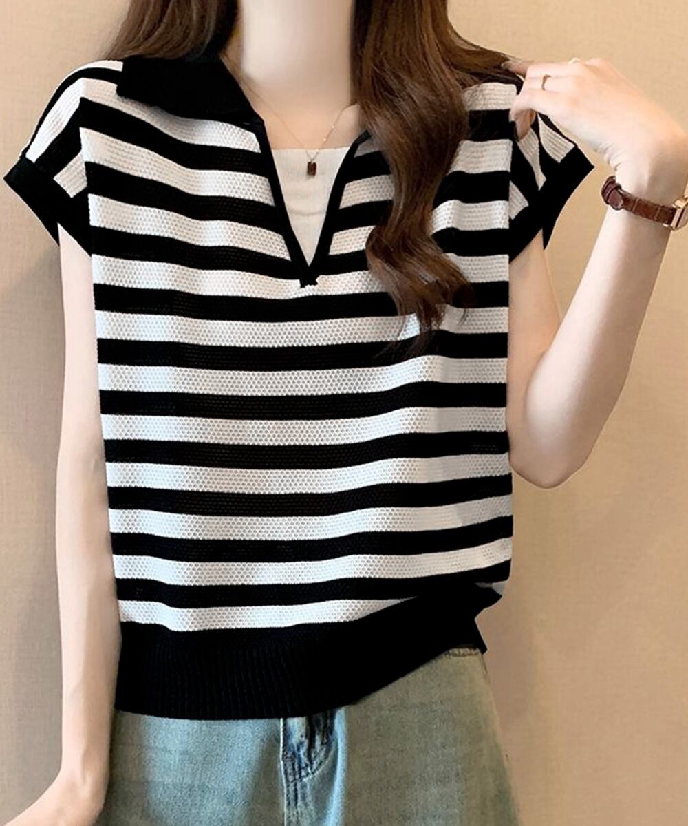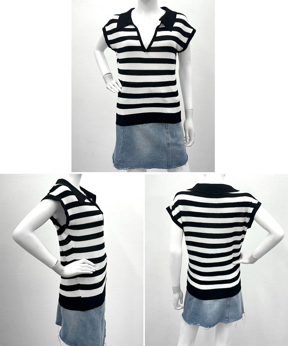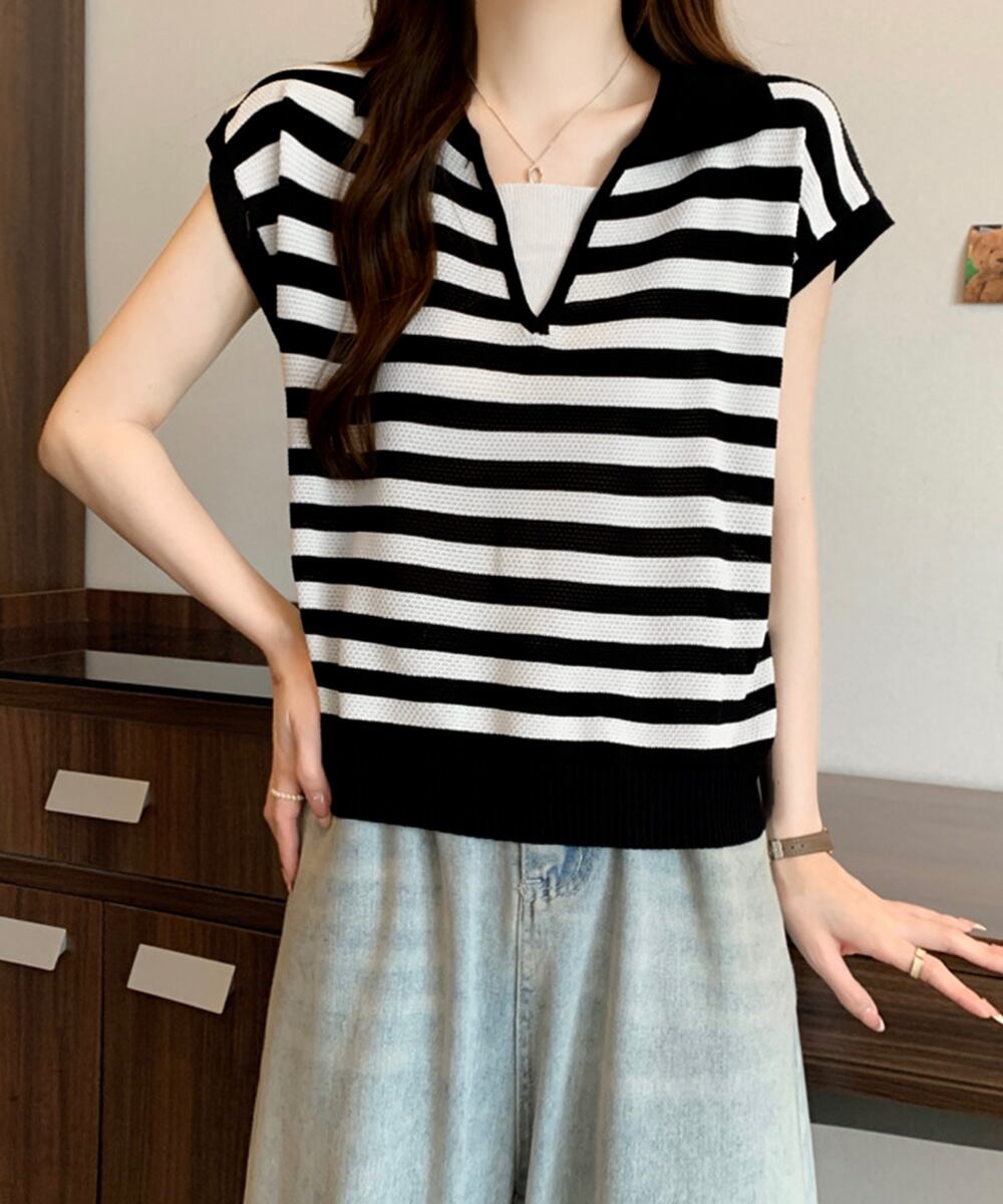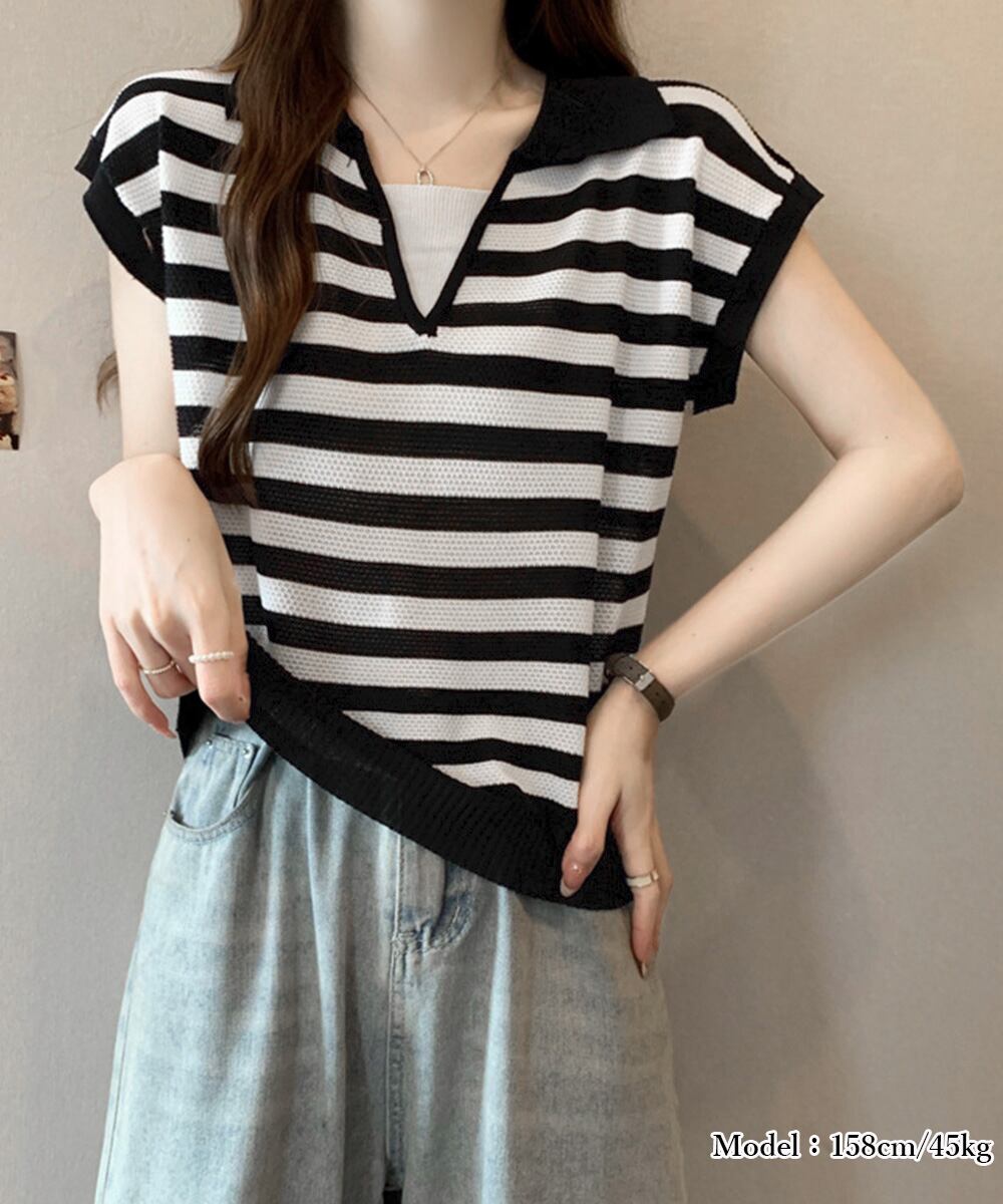 レイヤード風ニットプルオーバー レディース ノースリーブ ニットTシャツ 体型カバー 春夏ポロニット 着やせ夏服 韓国風