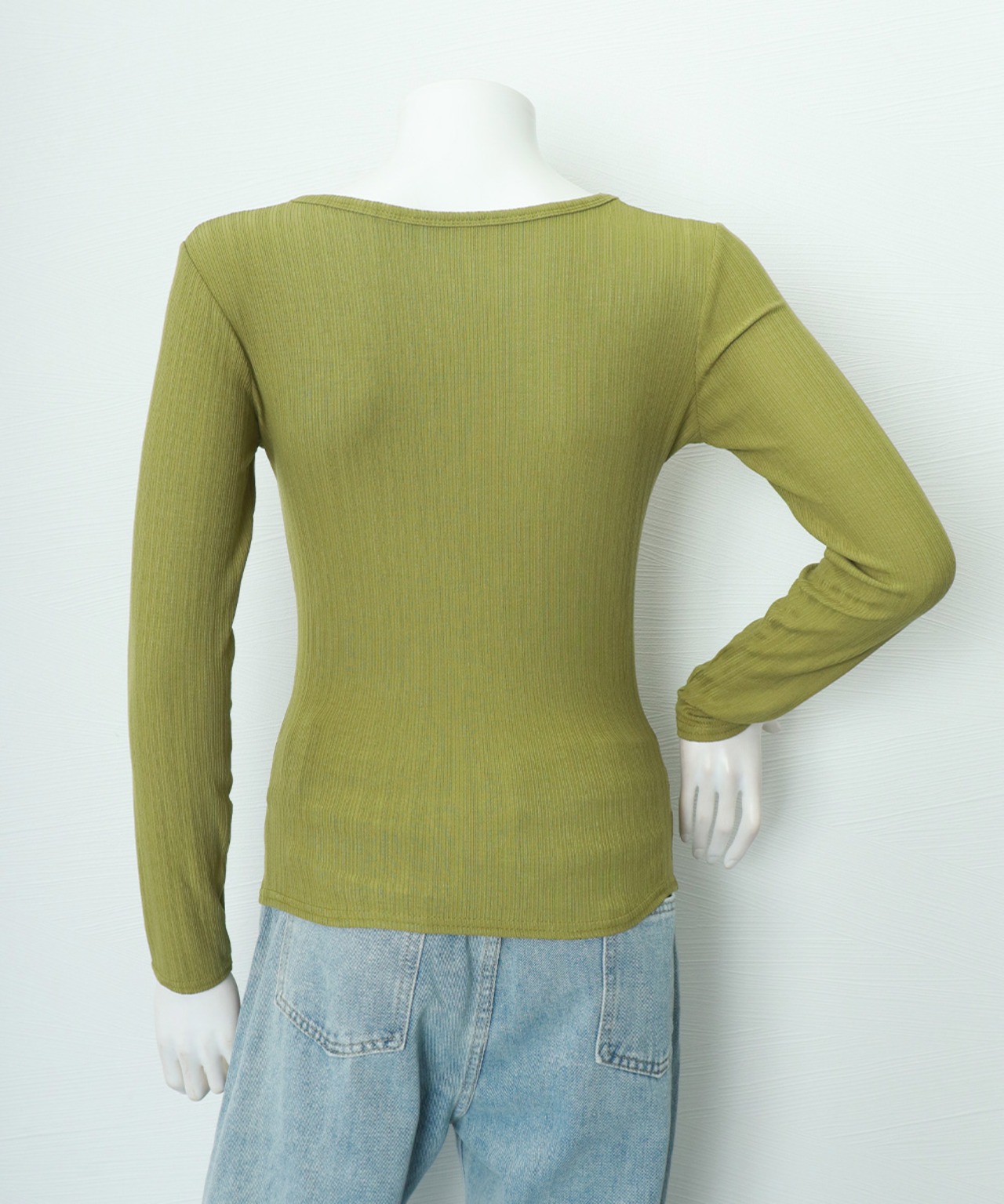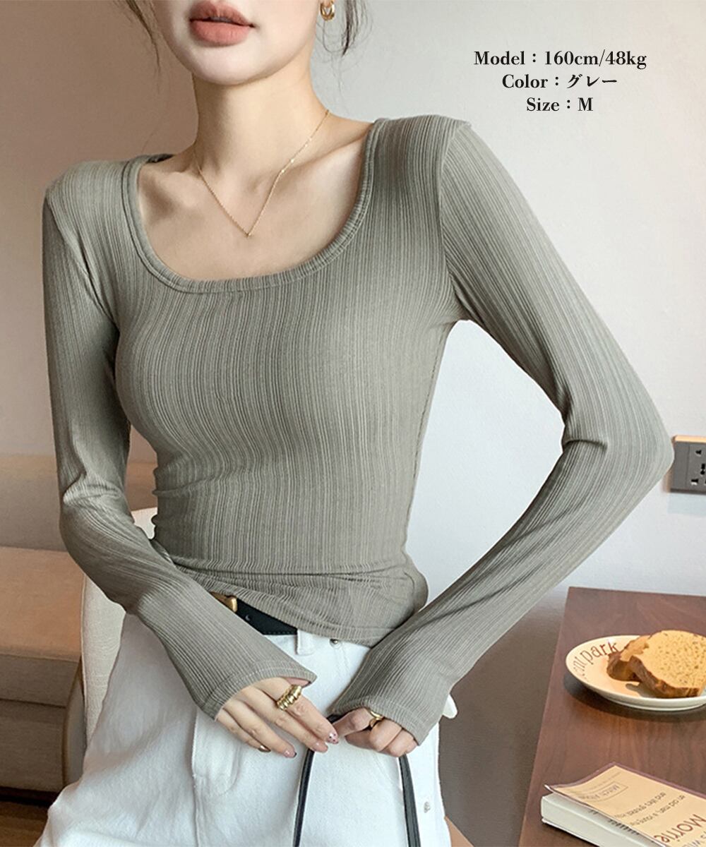毎日の着回しに重宝するシンプルな細身トップスです。