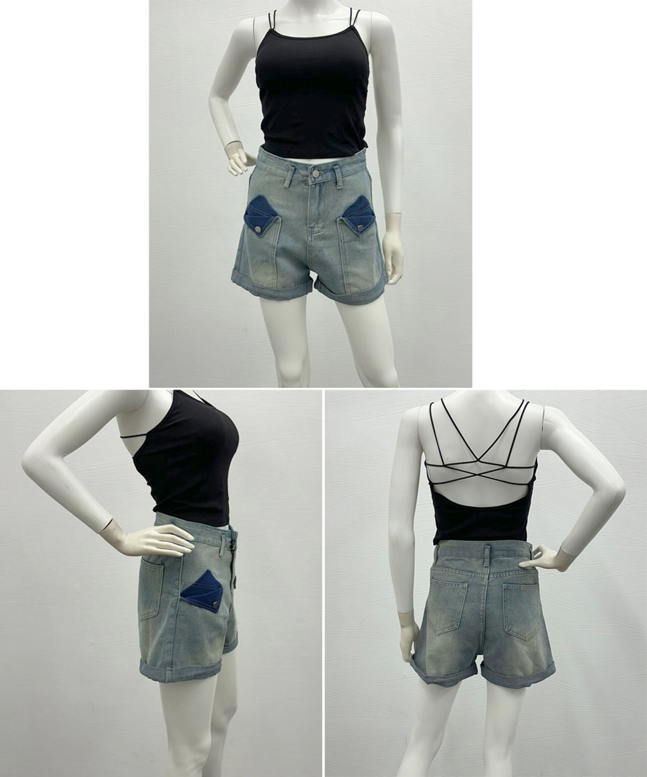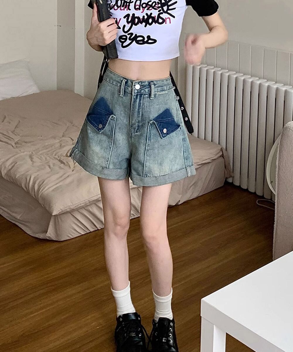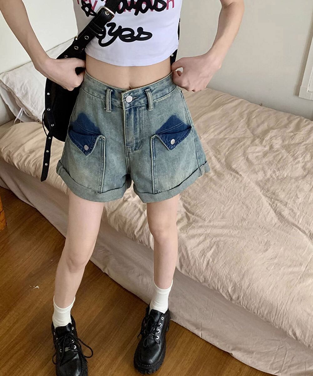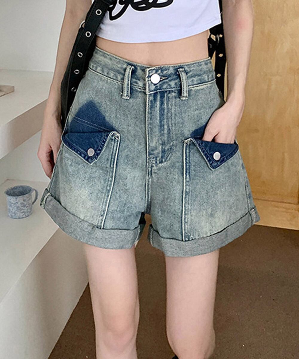 ロールアップ デニムショートパンツ 美脚