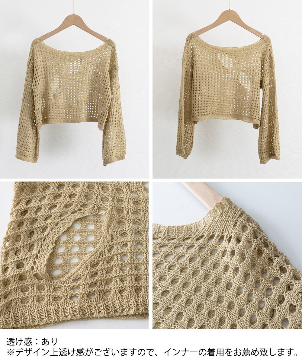 メッシュ編みが涼しげで軽やかな印象のショート丈サマーニット