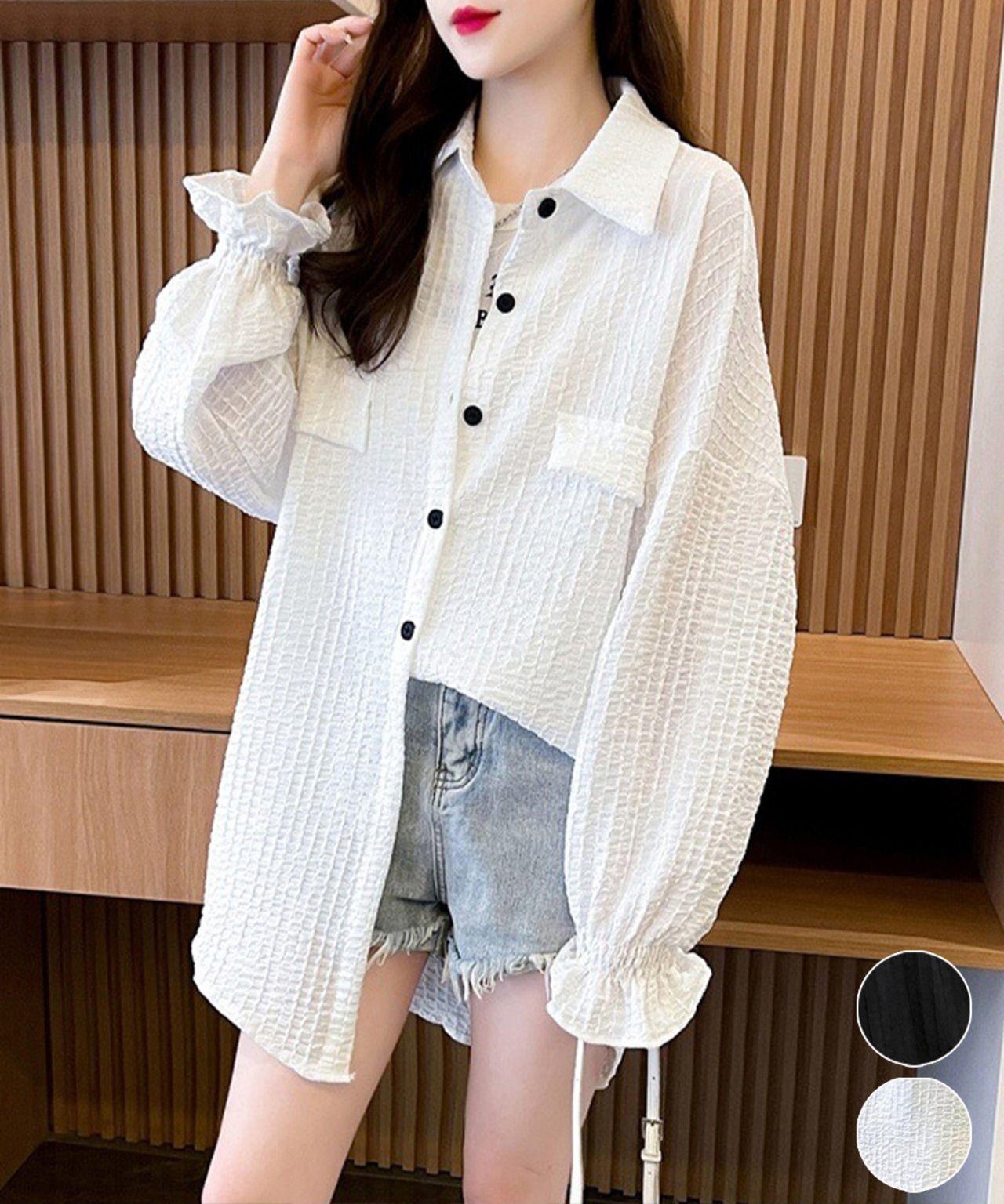 トレンドライクなキャンディスリーブが女性らしさを引き出すシャツカーディガン