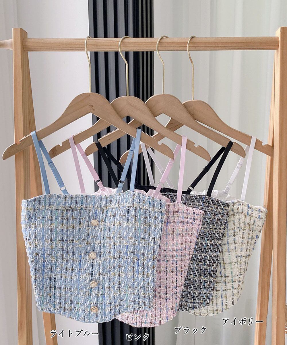 この春夏シーズンにぴったりのツイード風キャミソールは、大人可愛いスタイルを演出するアイテム。