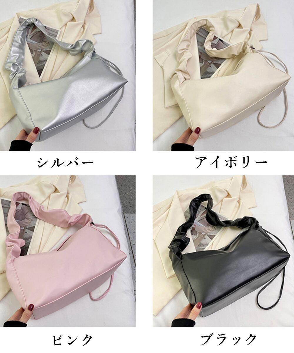 大容量肩掛けバッグ 無地斜め掛けバッグ シルバーバッグ人気