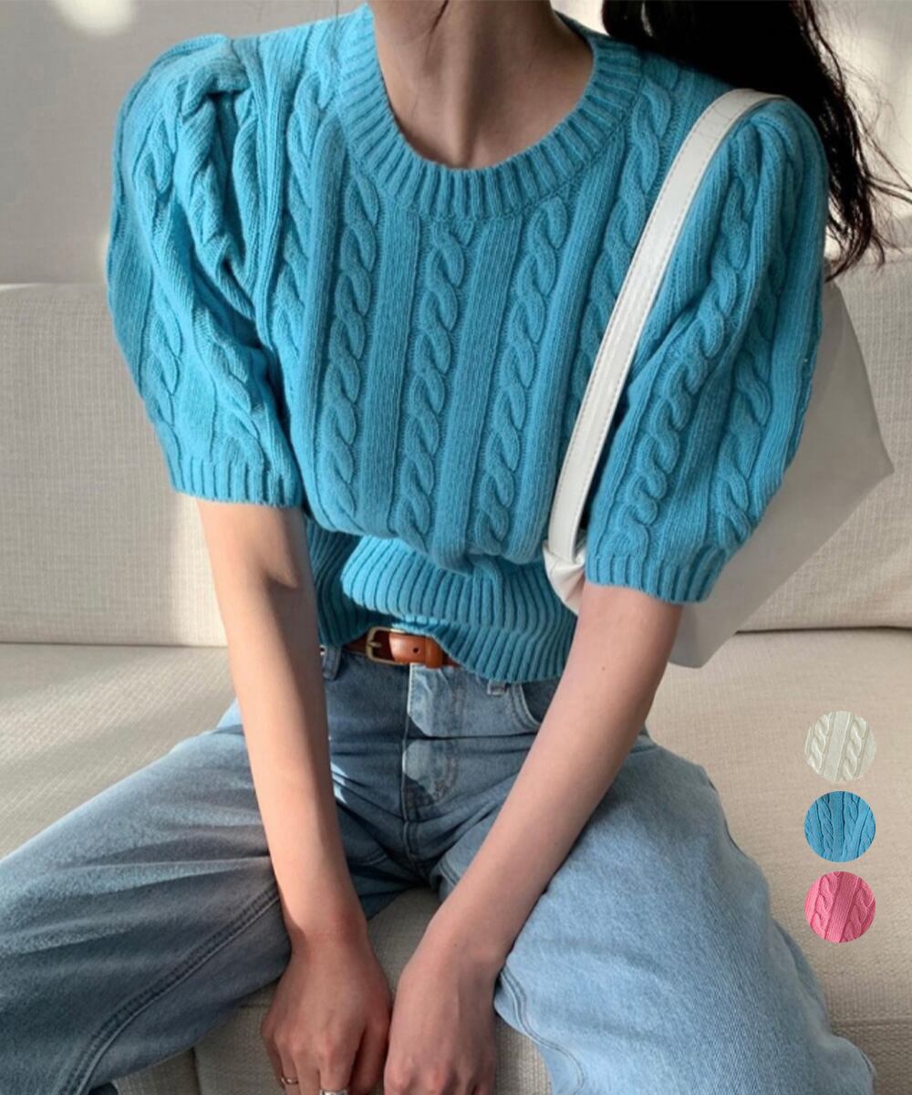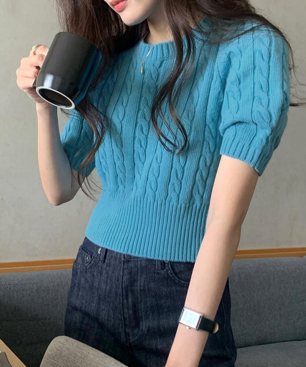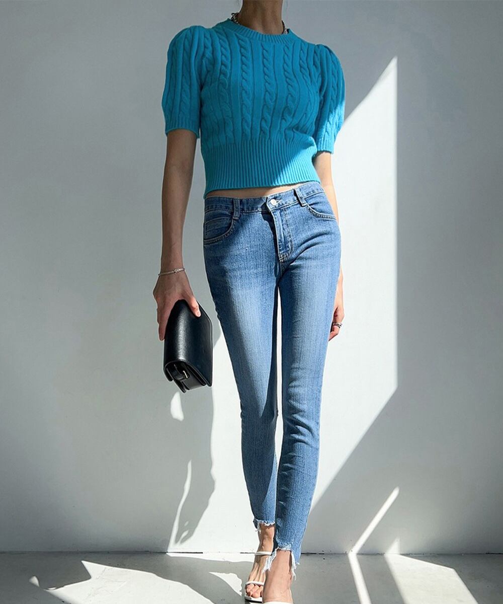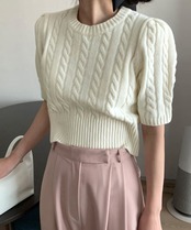 ショート丈でこなれ感があり、パフスリーブで女性らしい印象に