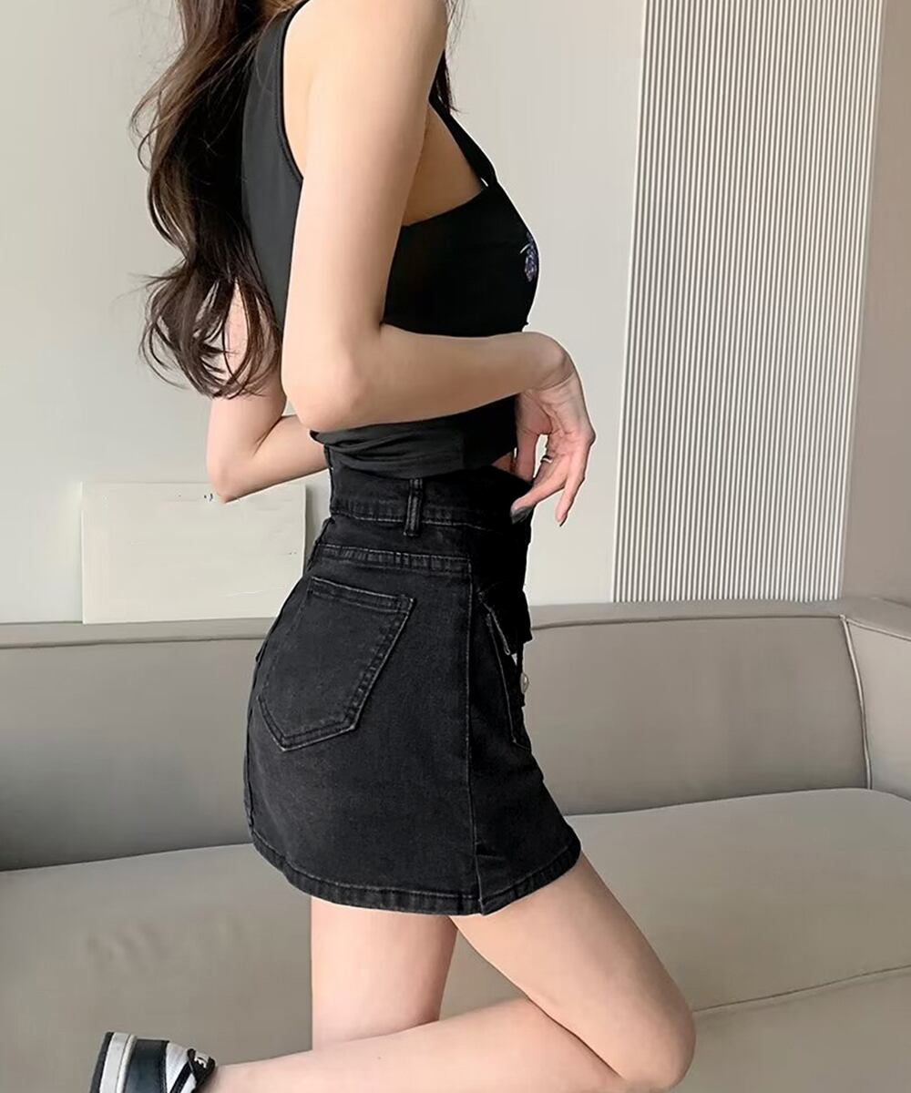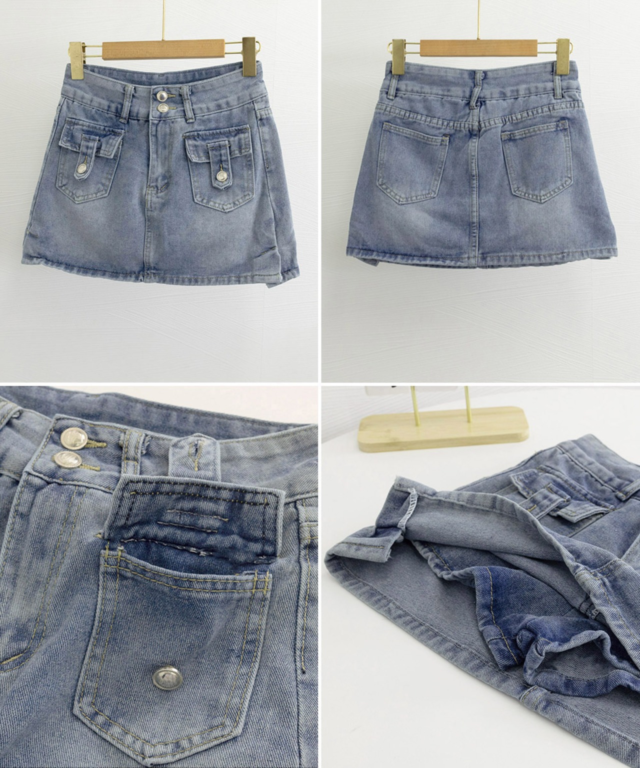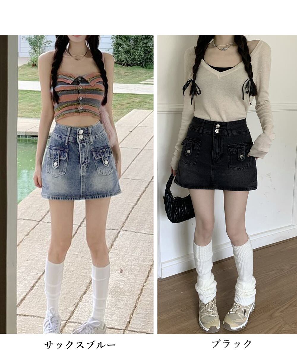 カーゴミニスカート 細見え台形スカート 着やせデニムレトロ