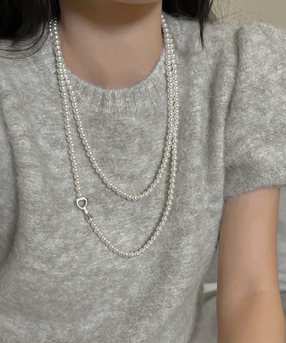 顔周りが気品漂う、プチプラ2wayパールロングネックレス