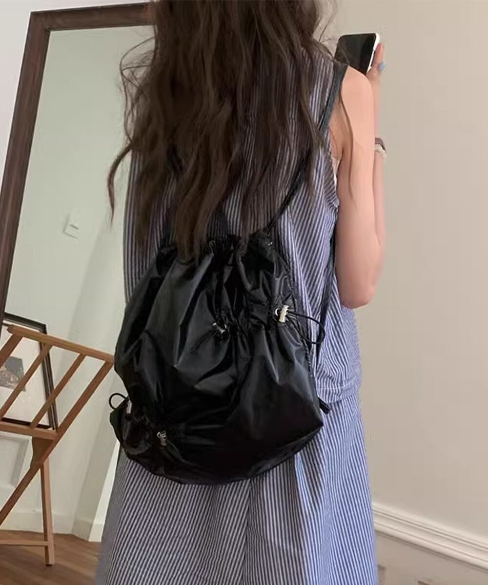 巾着型リュック デイパック プリーツ 無地 修学旅行 カバン オシャレ シンプル 通学 カジュアル お出かけ