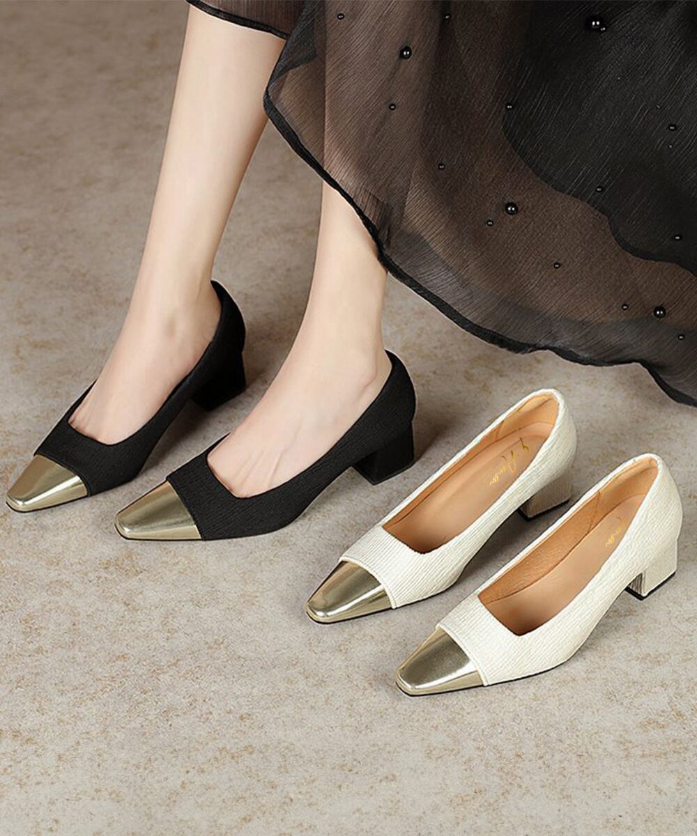 つま先には艶やかなゴールドのトゥキャップを取り入れており、モダンで洗練された印象を与える
